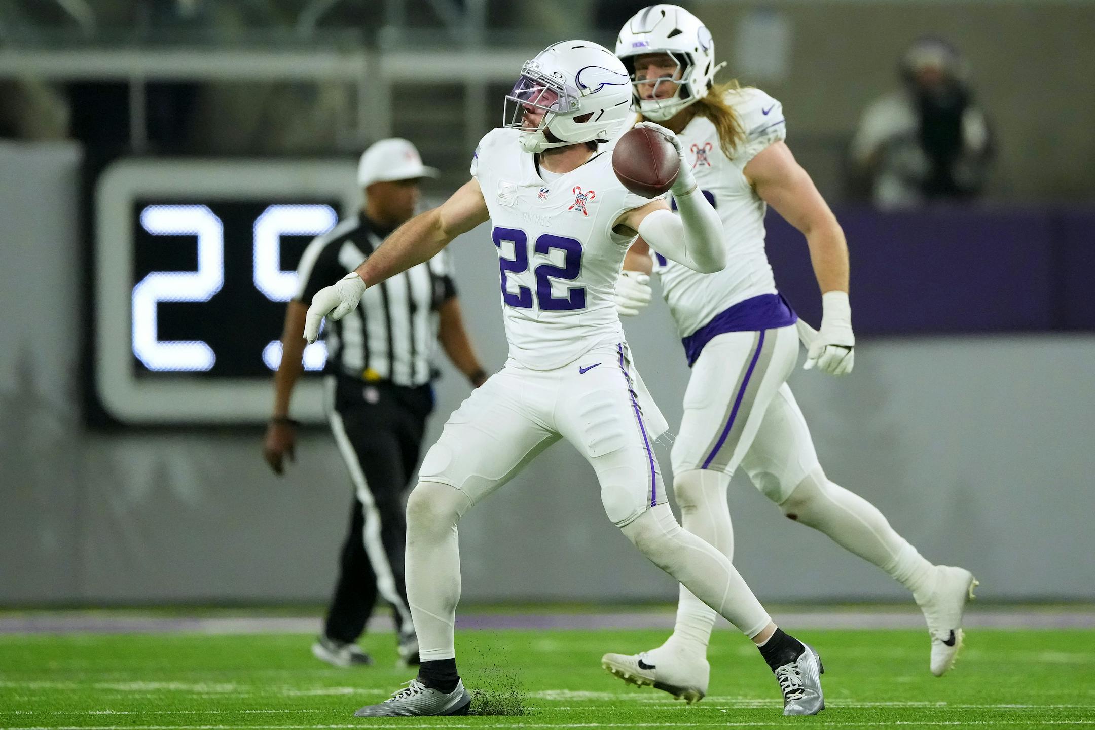 They roared for Justin Jefferson, whose 10-yard reception moments earlier had helped him pass Randy Moss for the most receiving yards by a NFL player in the first six seasons of his career. Then the picture changed to Harrison Smith, who had sacked Jared Goff in the first quarter and pounced on an Amon-Ra St. Brown crossing route in the third for the 39th interception of his 14-year career. The fans, dressed in winter white to match the Vikings’ special uniforms, lauded the safety with a grateful ovation. Smith, rarely the type to display emotion, responded by blowing kisses to the crowd.