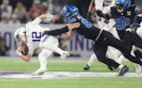 Jones got the ball on 14 of the Vikings’ first 24 plays, finishing with 21 touches for 63 yards and a rushing touchdown. The team captain credited his toughness to his parents and playing college ball at the University of Texas-El Paso, where “if we wanted a chance to win, I kind of had to play.”