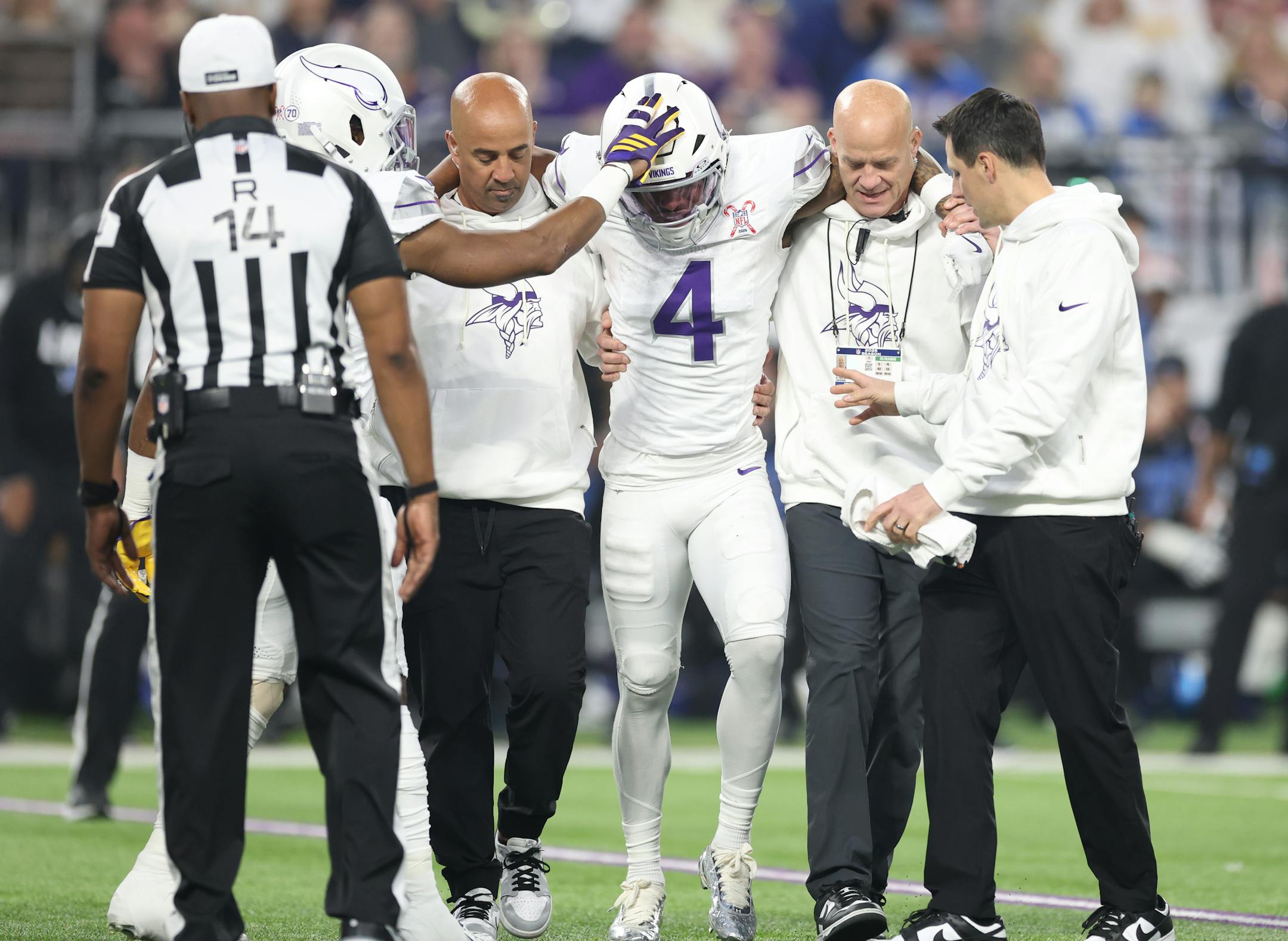 Running back Aaron Jones Sr. said he first felt pain in an ankle, then a knee, followed by a hip that “locked up” on him when he was tackled by Lions linebacker Jack Campbell in the second quarter of the Vikings’ 23-10 Christmas Day victory.