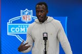 In Detroit, the Lions had 13 of 23 remaining, 11 of them starters, four of them first-team All-Pros, and Jameson Williams. Williams, of course, is the receiver Adofo-Mensah handed to the Lions. As rookie GM, he traded the 12th pick, dropped 20 spots and selected Lewis Cine in what was Adofo-Mensah’s first big move and the colossal mistake for which the unorthodox, analytics-based GM will live on in infamy.