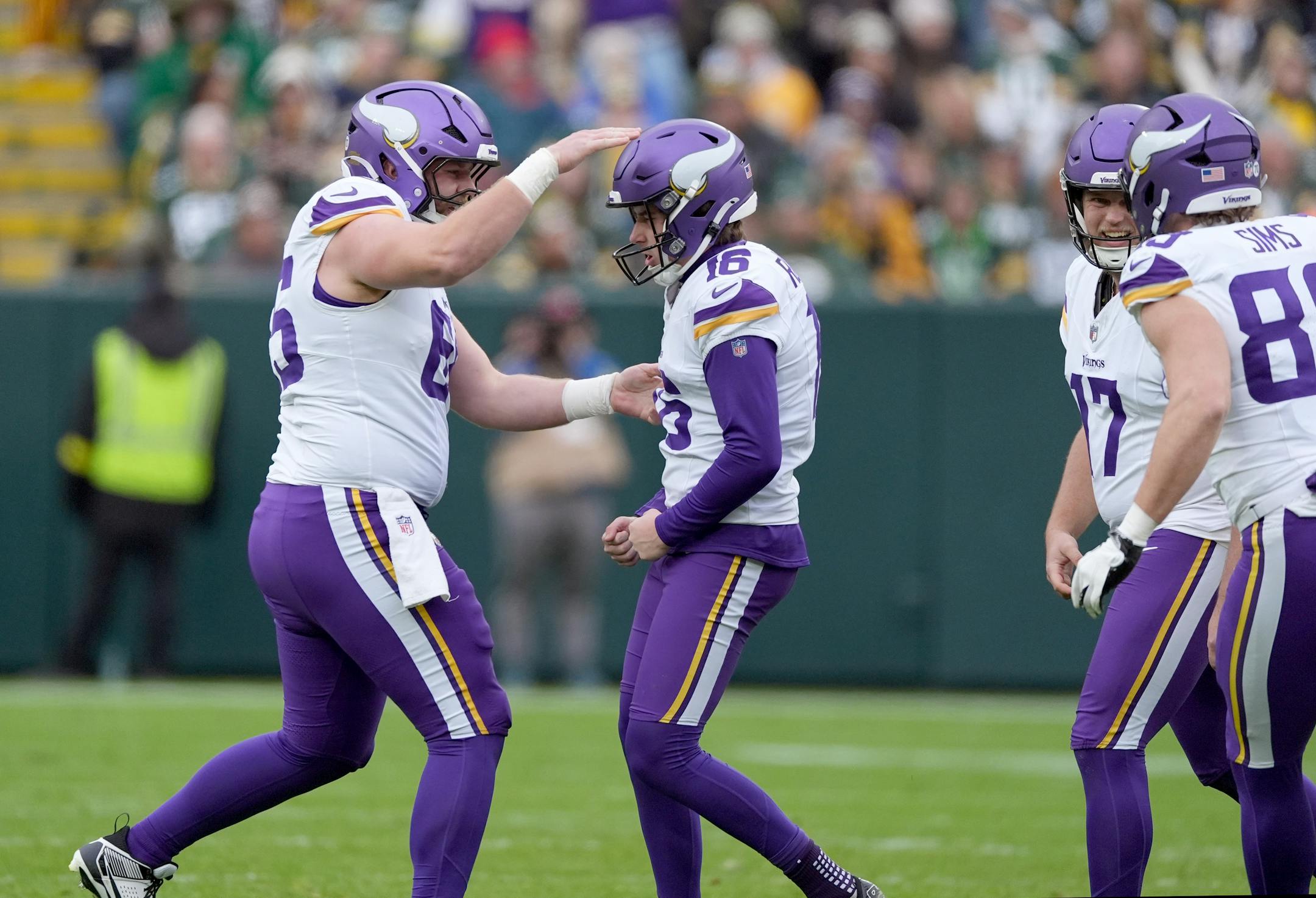 Asked to pick my Vikings quarter-century team (to be revealed next month), I snubbed Ryan Longwell as the kicker. Sorry, Ryan, but this Will Reichard kid is the best I’ve seen. He made another two 50-yarders without a miss, making him 16 for 21 in 24 games as a Viking. Longwell made 11 of 17 in 96 games over six years. This year, Reichard has tied the record for longest field goal at Soldier Field (59), set the Vikings record for longest field goal (62) and on Sunday kicked a 59-yarder at Lambeau.