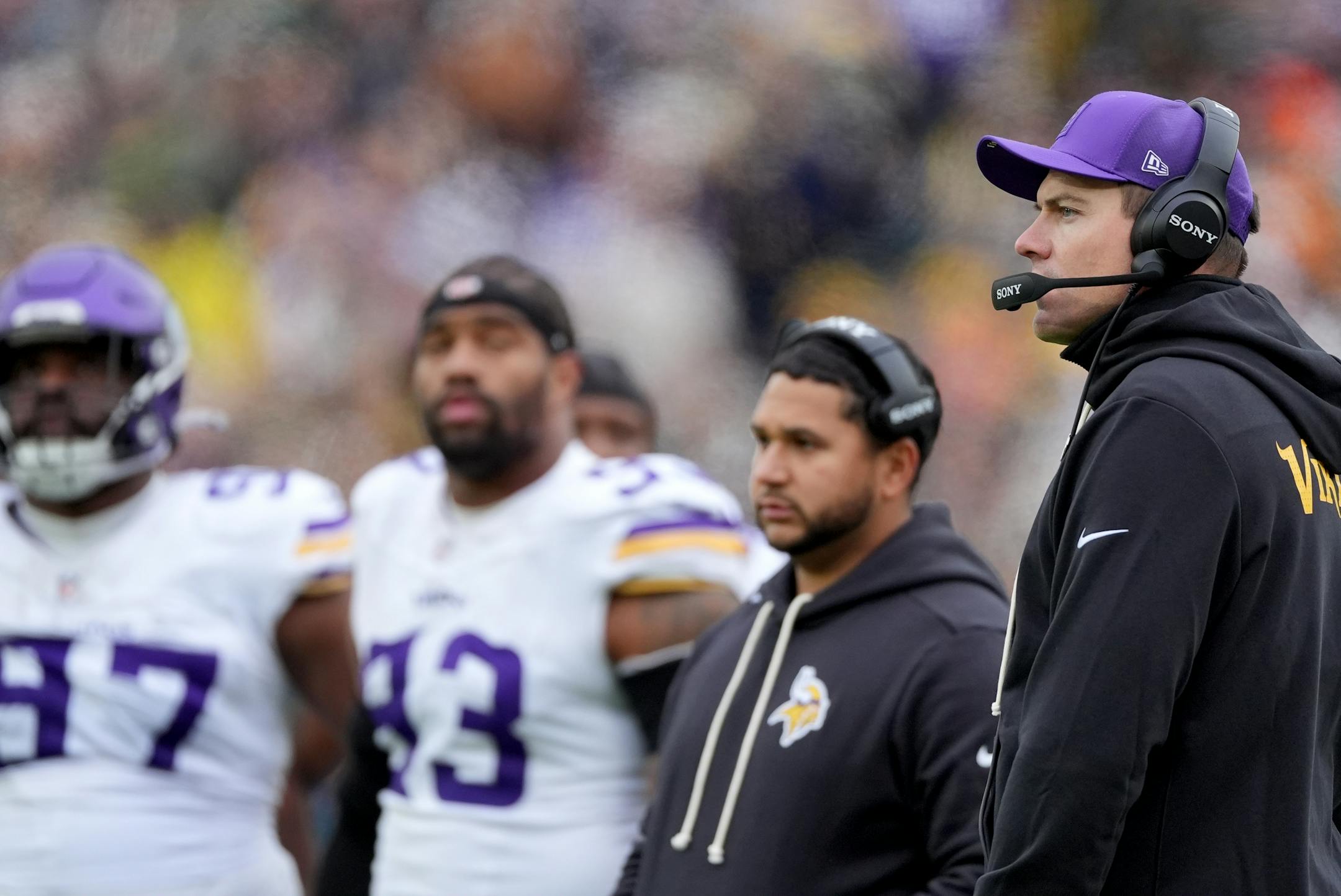 Trailing 7-3, the Vikings marched 69 yards in 12 plays, with Jordan Mason carrying the ball five straight times for 43 yards and Aaron Jones Sr. carrying it once for 5 yards. Then Kevin O’Connell made his worst call of the day. He got cute with a team that was more physical than his squad. He went with a QB sneak using tight end T.J. Hockenson under center on third-and-1 from the Packers’ 17.