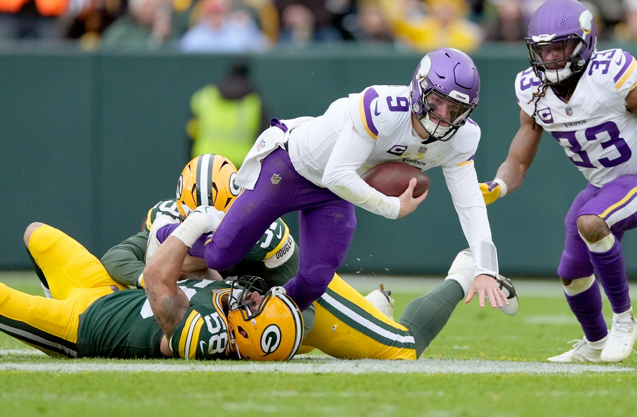 A disastrous third quarter put the game out of reach. The Vikings ran six plays for minus-10 yards in the quarter, while Myles Price’s turnover on a punt return gave Green Bay the ball at the Minnesota 6. The Vikings ran the ball well in the first half, but got stopped on two short-yardage attempts to extend a drive in Green Bay territory, and they had no way to get the ball downfield. On the other side of the ball, the fact the Packers didn’t have Jacobs didn’t seem to matter: Emanuel Wilson surpassed 100 yards playing in place of the injured Jacobs, as Green Bay held the ball for 16 of the first 22 minutes of the second half.