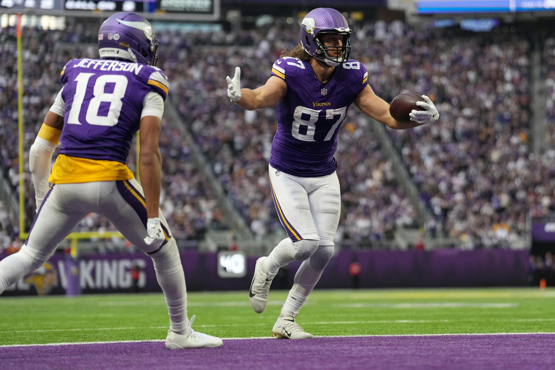 Tight end T.J. Hockenson was upgraded to limited, while wide receiver Jordan Addison remained limited when the Vikings issued their injury report Thursday.