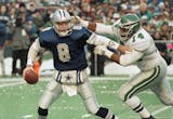They built it out of heavy personnel groups, using tight ends T.J. Hockenson, Josh Oliver and Ben Sims for a combined 95 snaps while playing C.J. Ham for 26 of their 64 offensive snaps, using the fullback as a pass blocker or receiving option on 10 snaps while making him a run blocker on 16. The Vikings had multiple tight ends or running backs on the field for nine of McCarthy’s 23 pass attempts; McCarthy’s first completion, to Sims, and his first touchdown pass to Oliver, an 18-yarder, came out of three-tight end sets.
