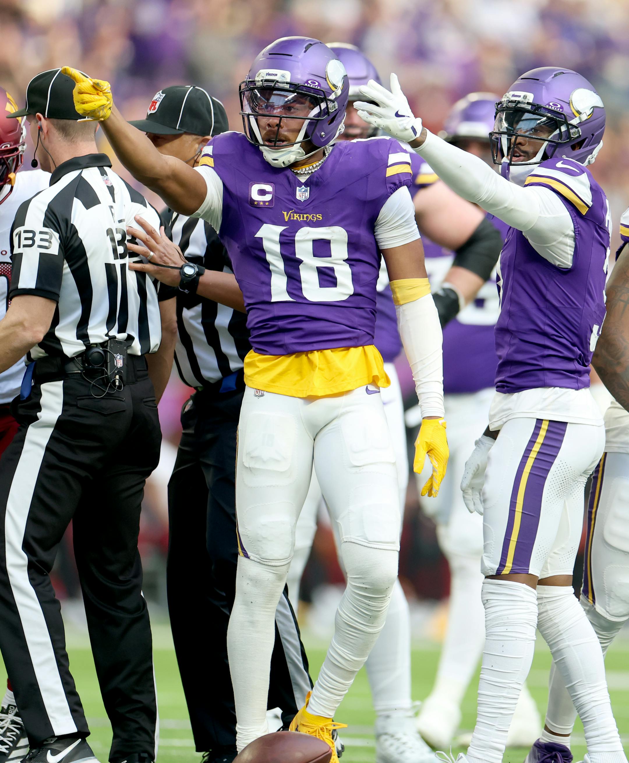The coach’s multilayered answer, to a question about Jefferson’s leadership, touched on several pertinent themes about the Vikings offense in 2025. Jefferson’s celebration was actually the second play O’Connell brought up — after highlighting how Jefferson created space for T.J. Hockenson on a fourth-quarter touchdown by recognizing the Commanders’ coverage and widening his route — to praise how the receiver solves defenses to help his young QB and open space for others.