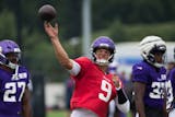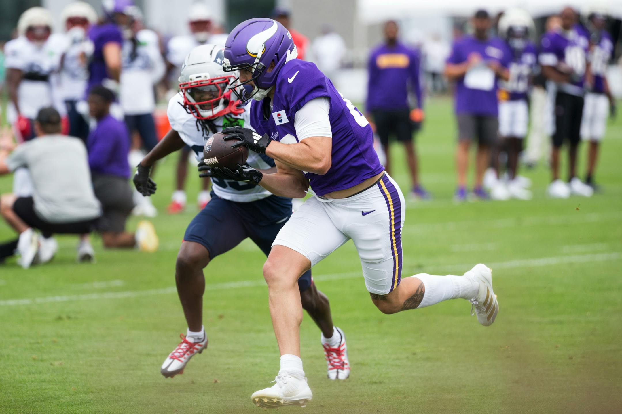 But he made some noise in front of Vikings fans at the team’s Eagan headquarters, flexing in front of the purple-clad bleachers after catching one of his few deep grabs from Patriots quarterback Drake Maye.