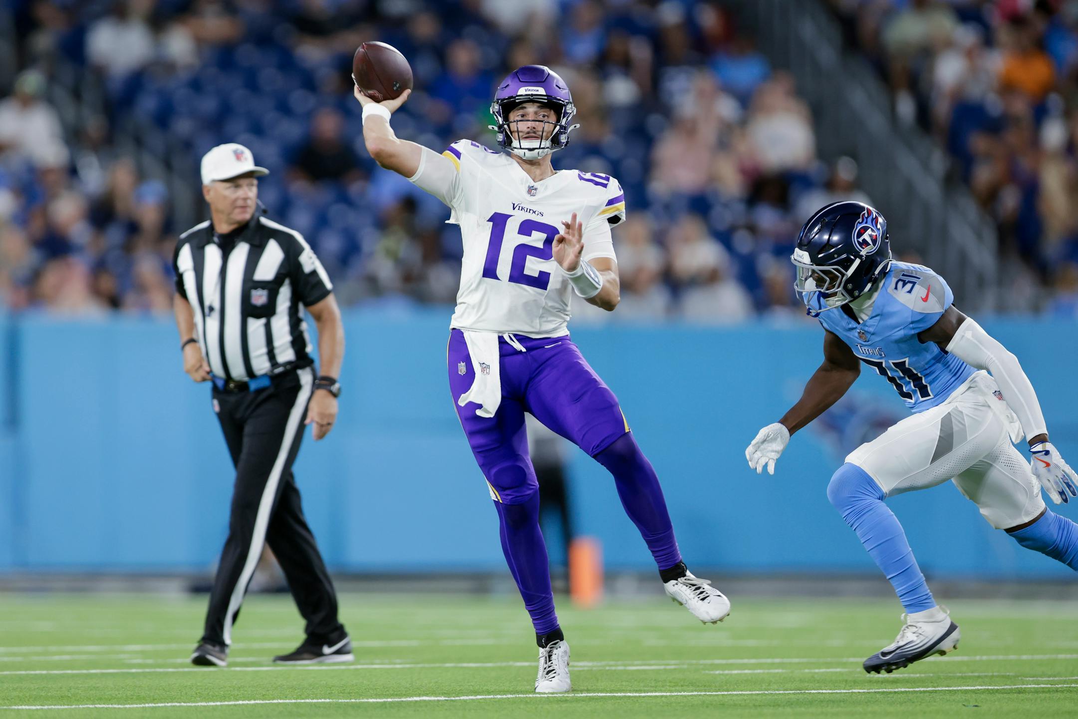 Brosmer threw a dart into a tight window in the third quarter to Bryson Nesbit, who turned and fled into the end zone for a 21-yard touchdown. It was the Vikings’ first touchdown of the preseason since the fourth quarter of the first preseason game against Houston — also a Brosmer touchdown pass.