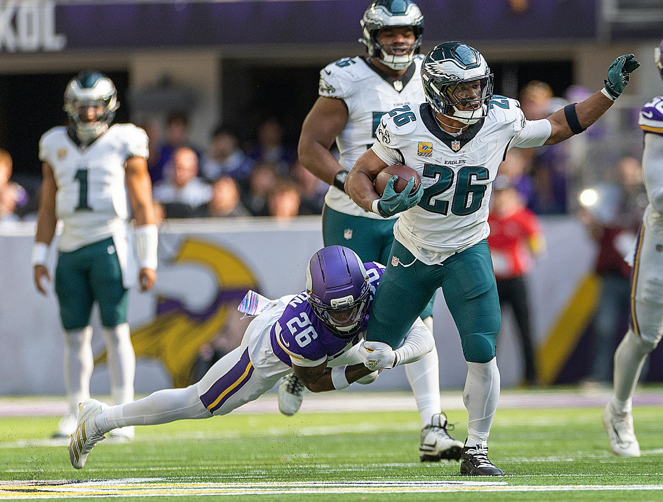 Keep Saquon Barkley mired in his seasonlong slump and the Vikings beat the Eagles at home. That’s how all of us saw Sunday’s game going. Well, the Vikings lost with Barkley gaining only 20 yards on his final 13 carries and 44 with a 2.0 average overall.