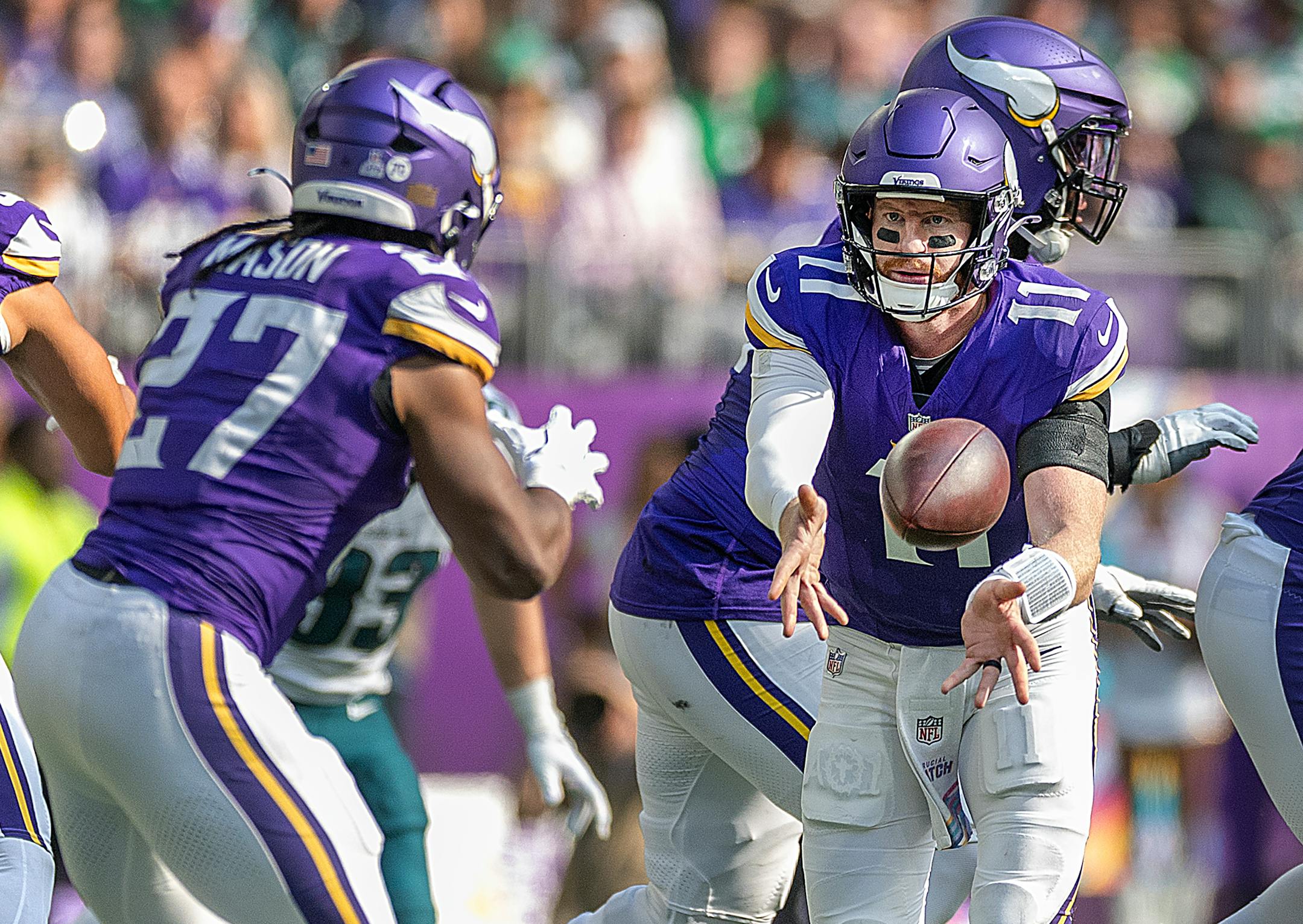 Great job. Unfortunately, no one saw Jalen Hurts posting the first perfect passer rating of his career (158.3). Hurts isn’t supposed to do what he did with ease and little pressure against a Vikings team that was stuffing the run. What did he do? Throw five balls 20 or more yards downfield, completing all five for 215 yards and three touchdowns. Ouch.