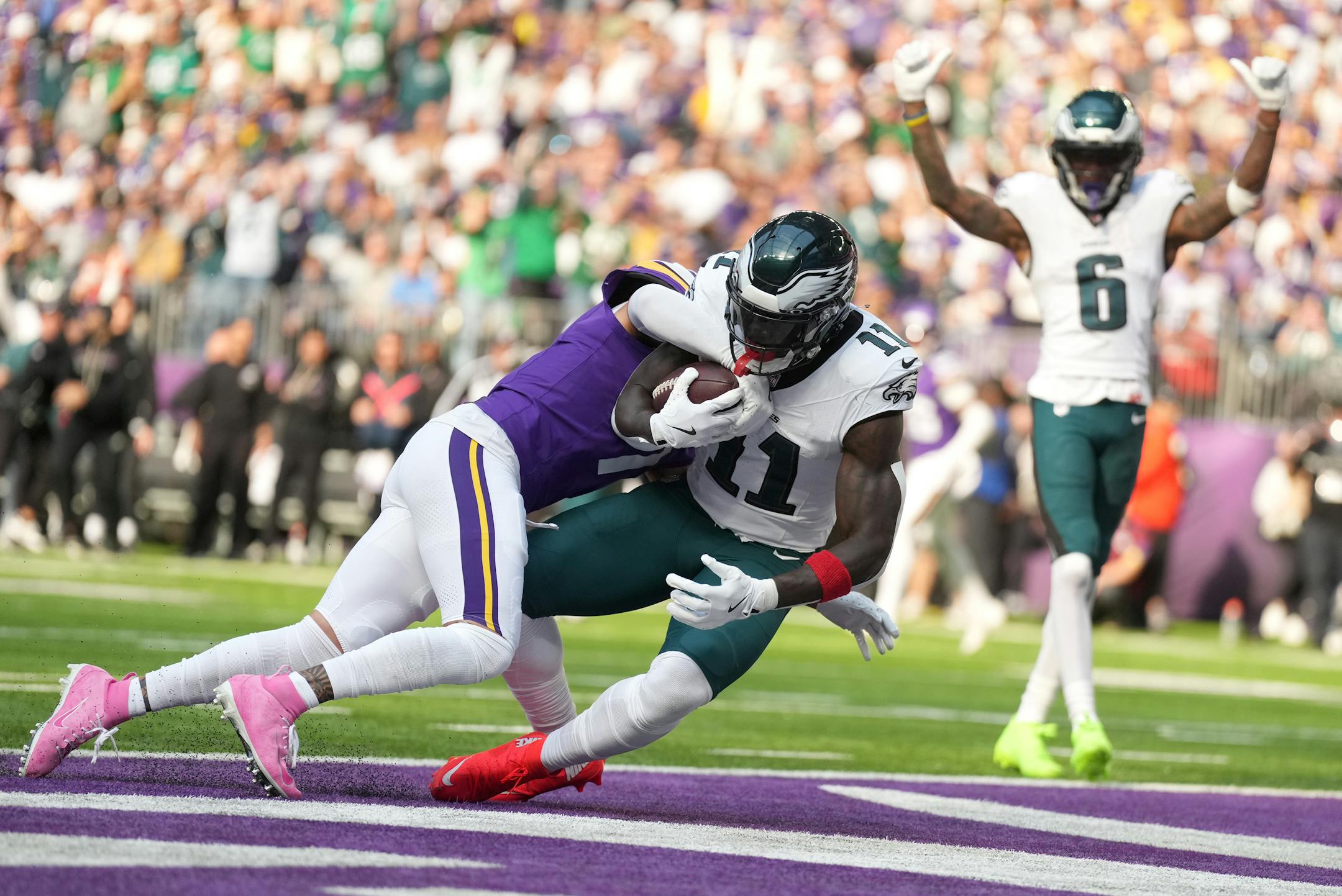 The Vikings returned to U.S. Bank Stadium on Sunday after two international games and their bye week to start a daunting stretch of their schedule. The Super Bowl champion Eagles came into the game having lost two in a row, but quarterback Jalen Hurts made the big plays when they mattered to win 28-22. Vikings QB Carson Wentz, starting his fourth straight game for the injured J.J. McCarthy, was 26 of 42 for 313 yards while throwing two interceptions, one of which was returned for a touchdown. The Vikings fell to 3-3. They next play Thursday night at the Los Angeles Chargers.