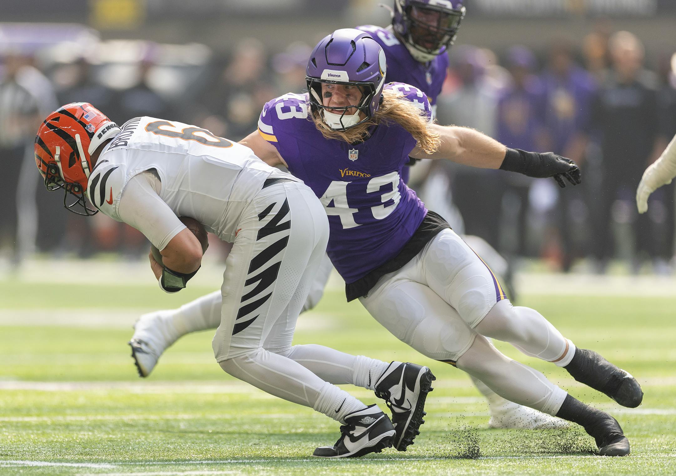 Vikings: Edge rusher Andrew Van Ginkel worked on the side with the Vikings’ injured players during Friday’s practice in Dublin and won’t play Sunday against the Steelers. Van Ginkel had returned from a neck injury and concussion to play eight snaps last Sunday against the Bengals, but his neck injury kept him from practicing all week.