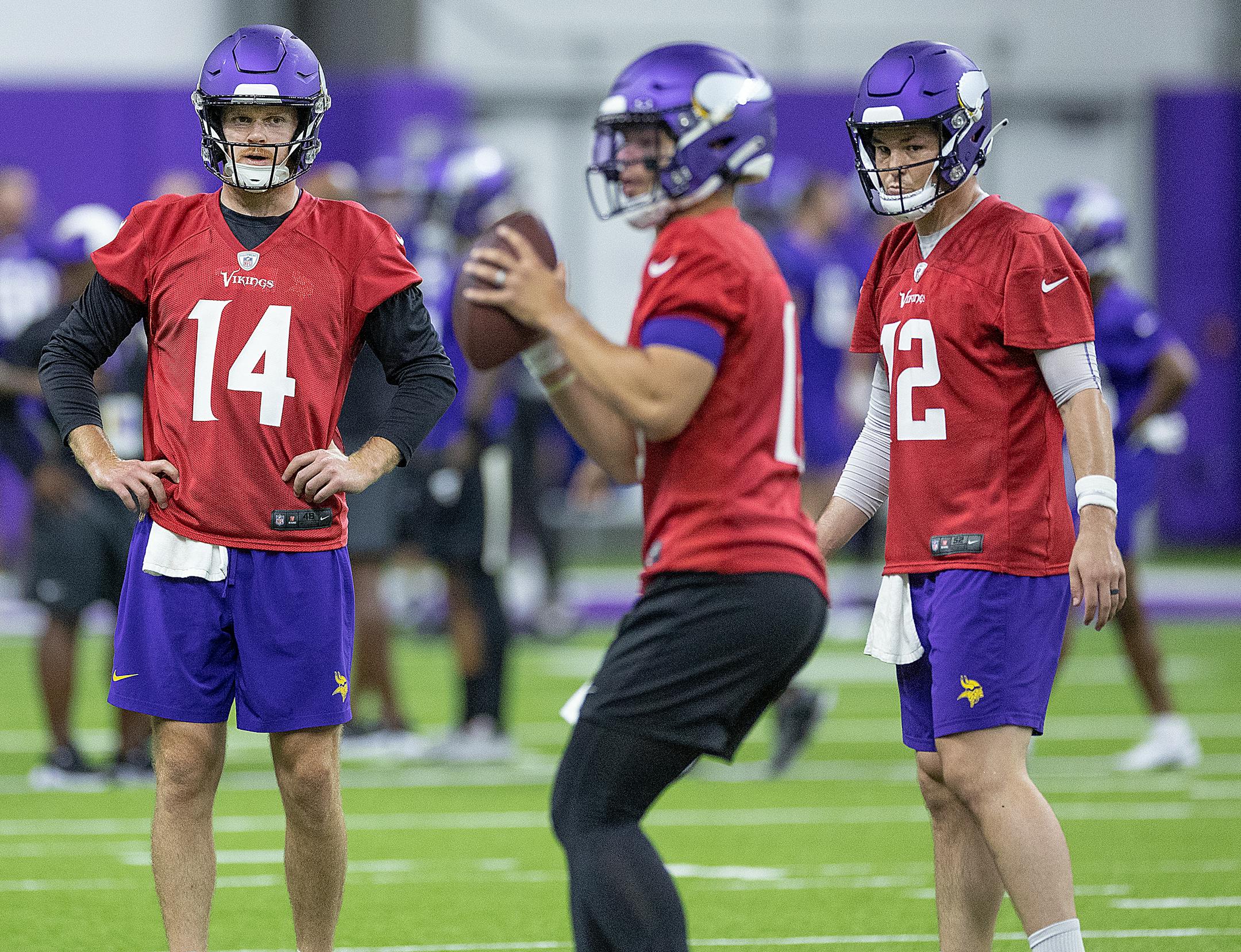 The Vikings have liked what they’ve seen so far from Darnold, whose passes have stood out in throwing sessions when contact and shoulder pads are not allowed. He’s had early retention of the Vikings playbook, knowing similar concepts from spending last season in the 49ers’ West Coast offense, according to offensive coordinator Wes Phillips.