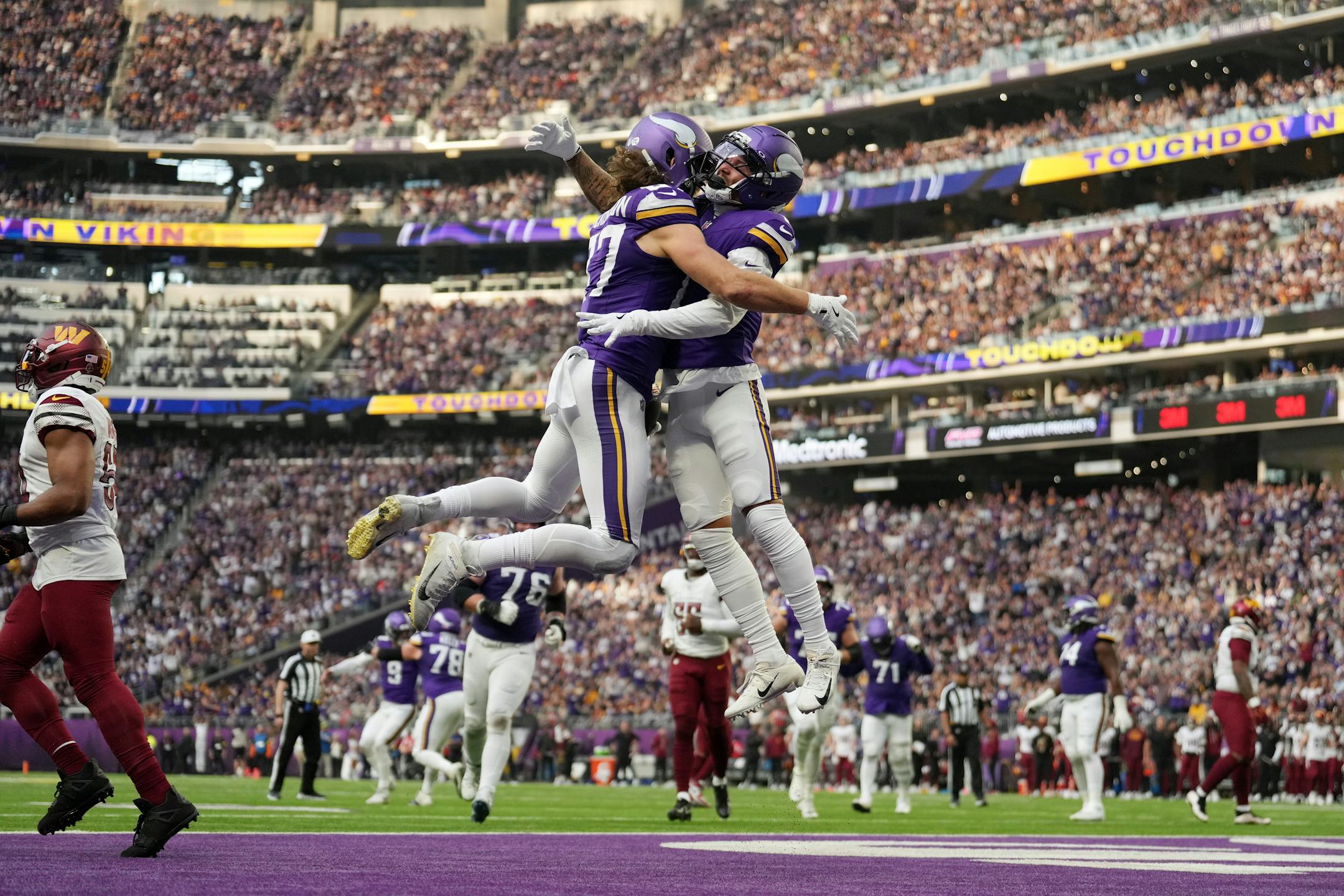 McCarthy finished 16-for-23 for 163 yards and three touchdowns, hitting Josh Oliver for two scores and T.J. Hockenson for the other TD. Jordan Mason, who paired with Aaron Jones Sr. for 128 rushing yards, provided the other touchdown on an 8-yard score in the second quarter.