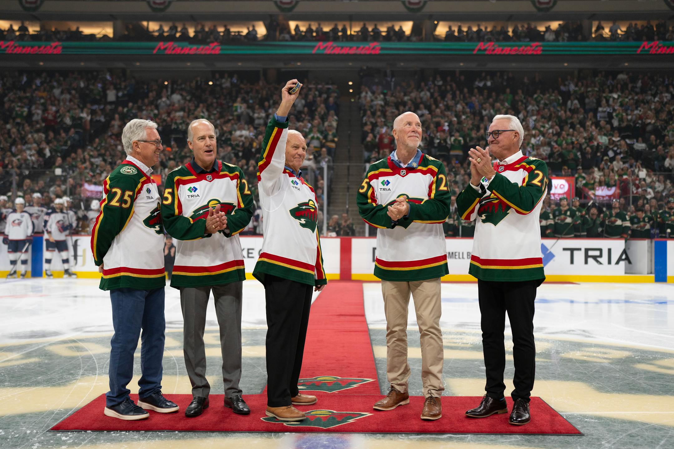 Instead of his longtime perch behind the bench, former Wild coach Jacques Lemaire stood at center ice alongside the team’s inaugural coaching staff and original General Manager Doug Risebrough for a ceremonial puck drop to commemorate the franchise’s 25th anniversary.
