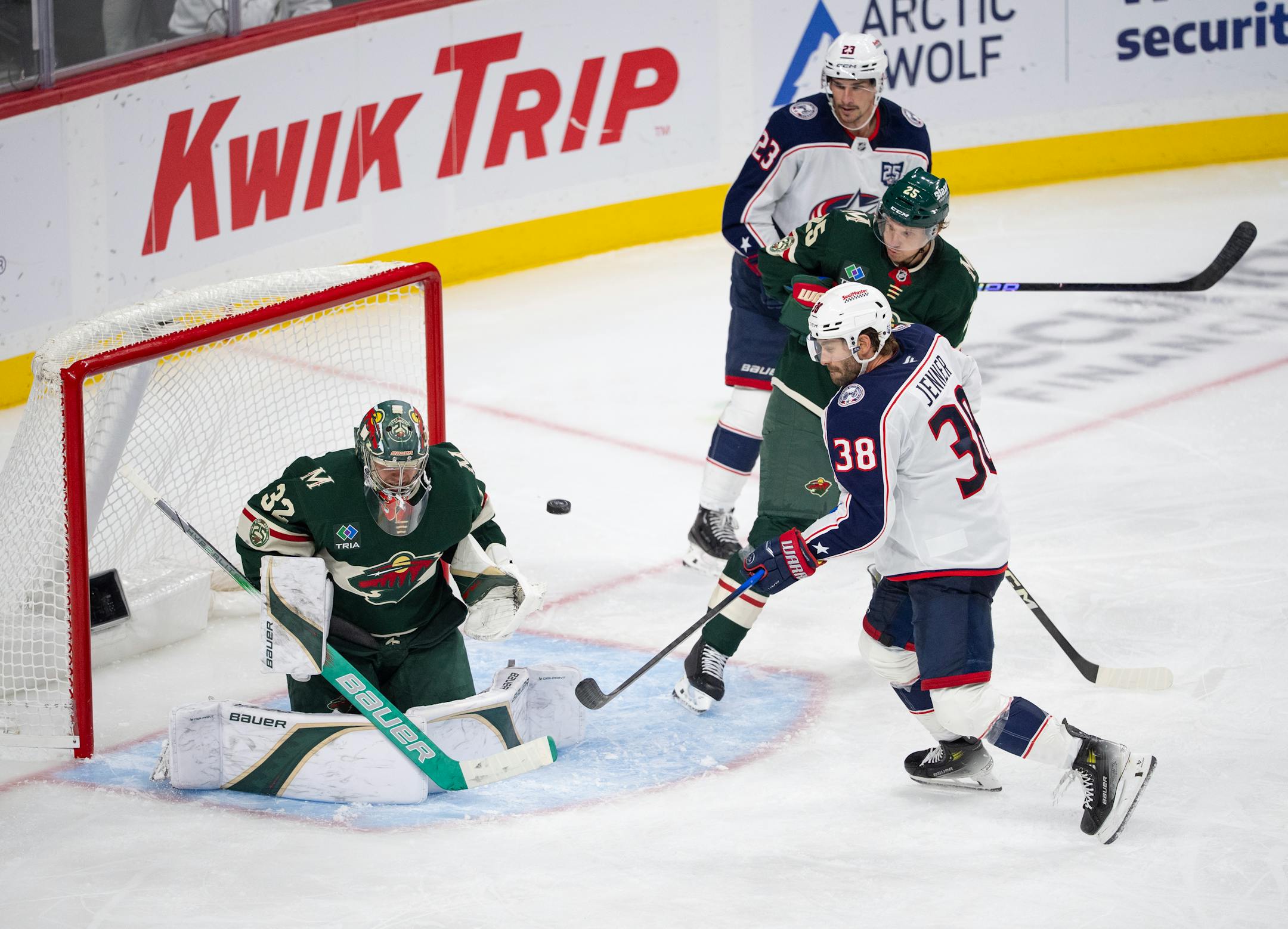 Then only seven seconds into the second, Marchenko flung in a shot from between the circles after Columbus won the initial faceoff and quickly moved into Wild territory.