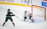 Their pressure improved in the second, but they didn’t elude Wallstedt until the third period: The first goal was a bank shot off his back, and the second came on the power play. Then with only 46 seconds to go in the period and Los Angeles in desperation mode, Adrian Kempe buried a deflected puck to send the Wild and Wallstedt back to square one.