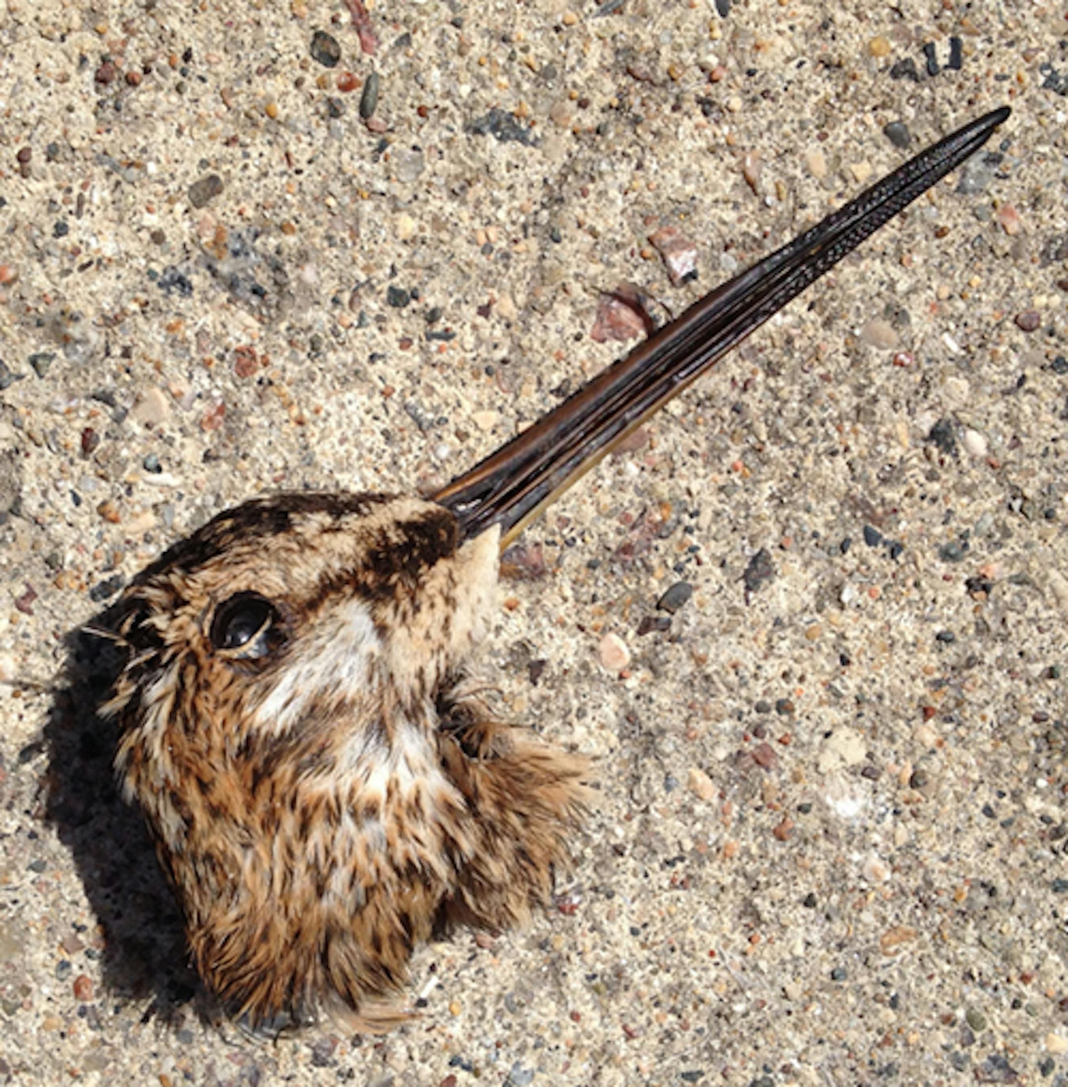 This has nothing to do with the tracking project, but below is a photo of a woodcock head and bill. I found this last spring at a location where the birds had been preforming courtship displays. I've no idea how the bird lost its head.