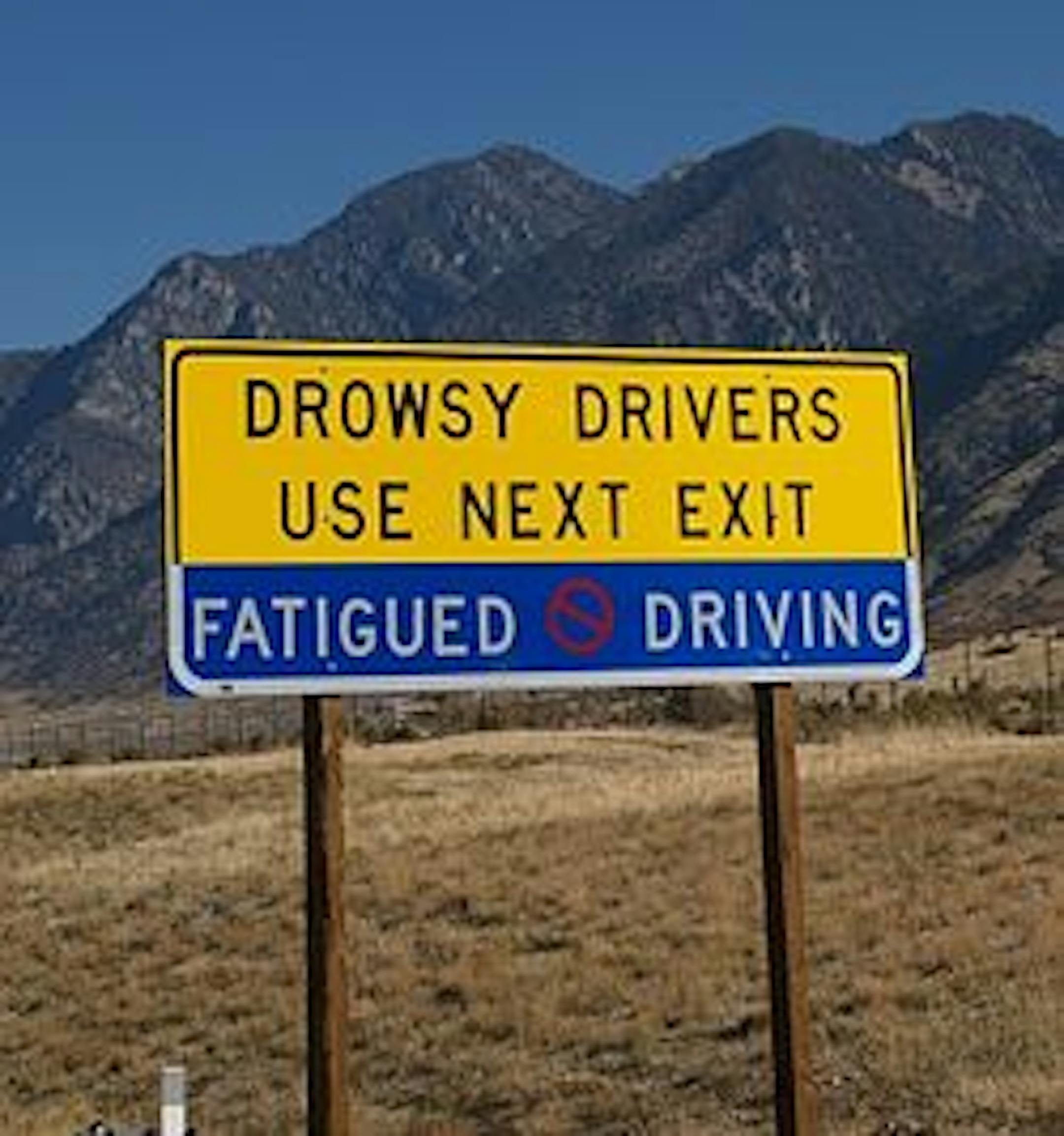 On a recent trip to Utah, I was driving along Interstate 15 when I came upon a sign that read "Drowsy Drivers Use Next Exit" and a warning about fatigued driving.