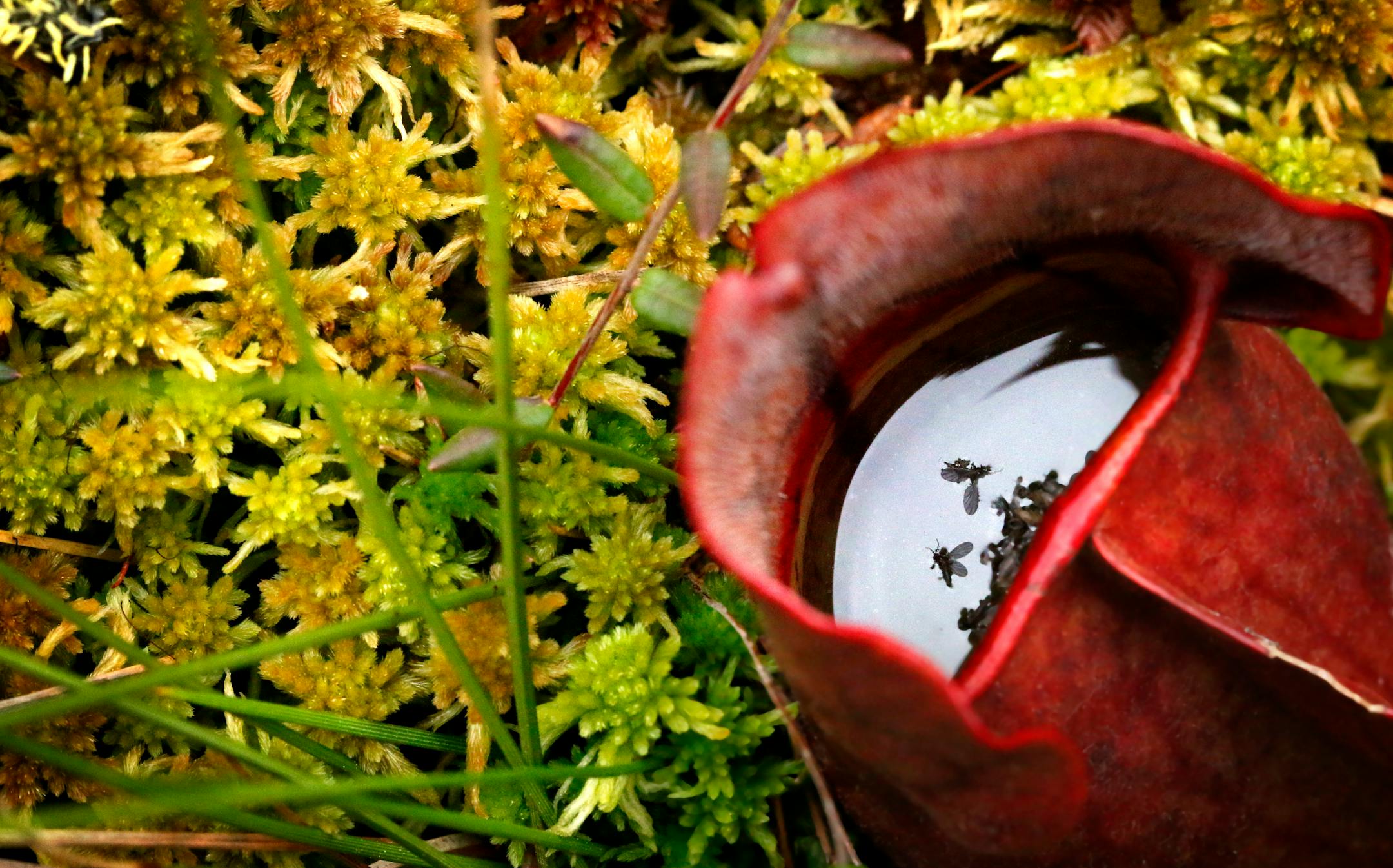 Downward hairy bristles prevent insects from exiting, much like spike strips at car rental places. The plants slowly dissolve insects, providing essential nutrients in a landscape that lacks nourishing soil and is often acidic.