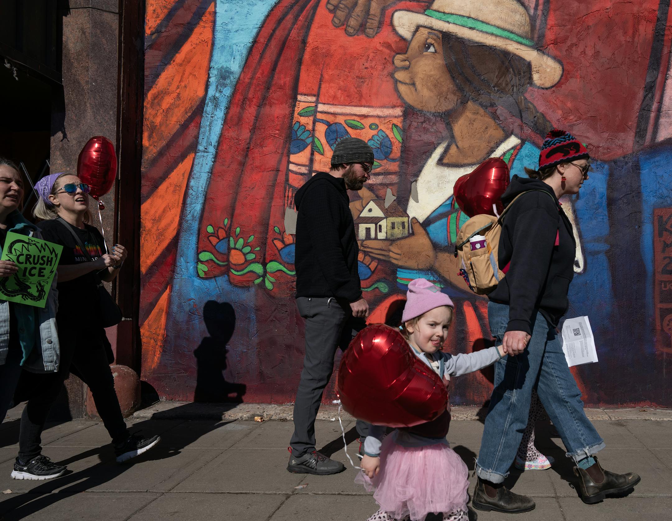 About 100 people from the Singing Resistance, ranging in age from 3 to 85, marched along E. Lake Street from Midtown Global Market singing songs of love, resistance and community on Feb. 16.