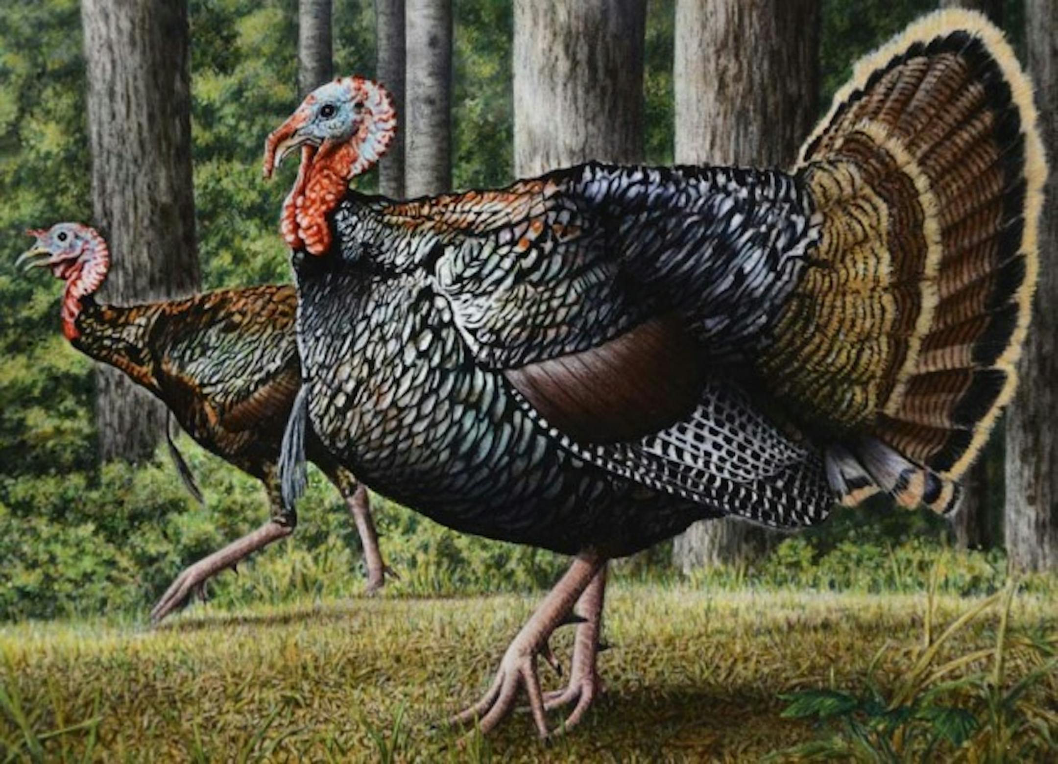 David Chapman of Minnetonka has won his third Minnesota turkey stamp contest with a watercolor painting of two toms.