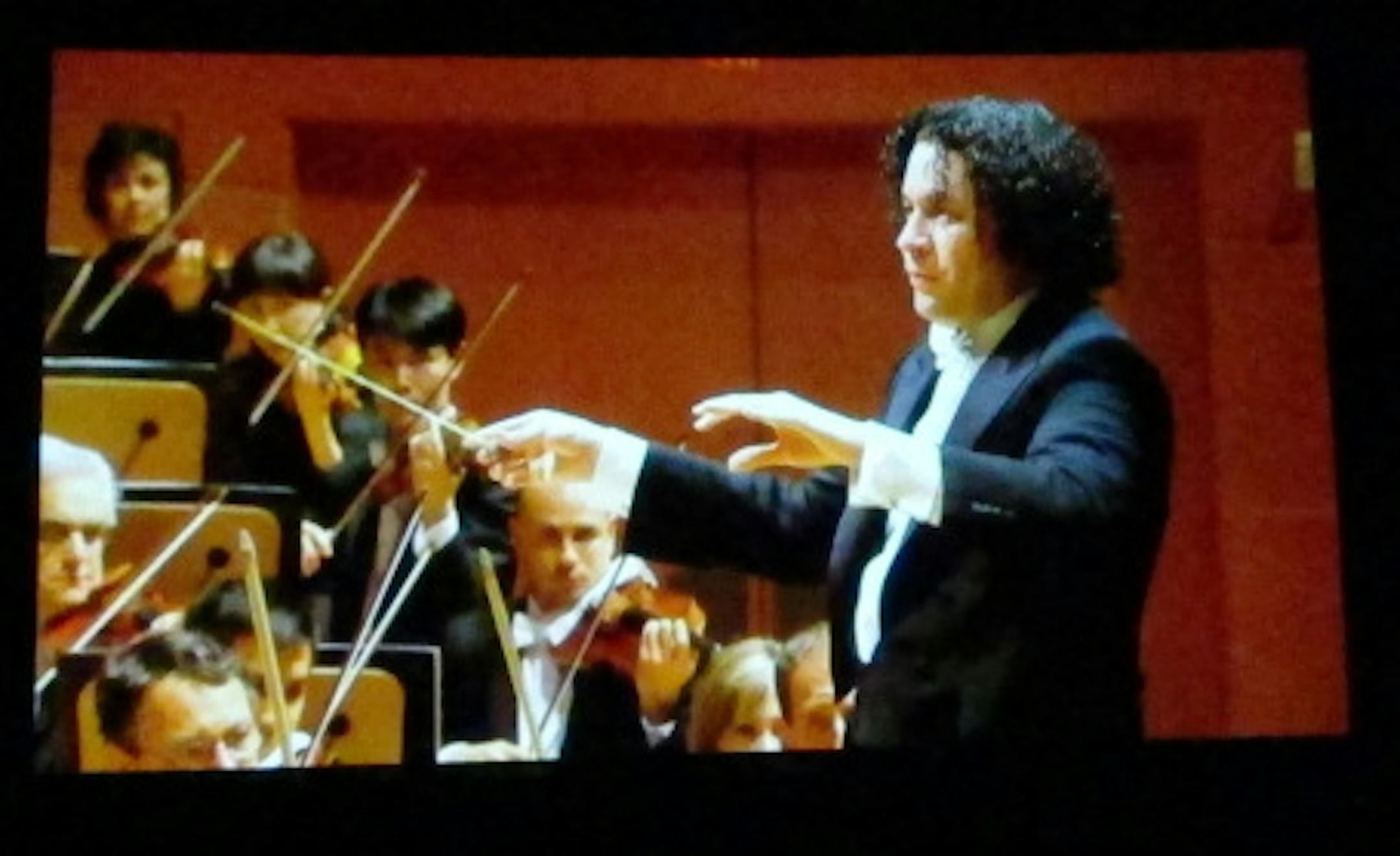 Another attendee reported that the Showplace Icon theater in St. Louis Park was about one-third full. Event organizers declined to release any attendance figures for other theaters. The glitz came mainly in the form of event host Vanessa Williams, the Grammy winning songster, actor and 1984 Miss America. Williams, in strapless dress and tons of makeup, did breathless interviews with Dudamel at intermission. Williams also spoke with former Minnesota Orchestra president Deb Borda, who now has that job at the LA Phil. Dudamel lived up to his reputation for joyous energy and ebullience, bursting forth with backstage soundbites about his passion for the music being performed.