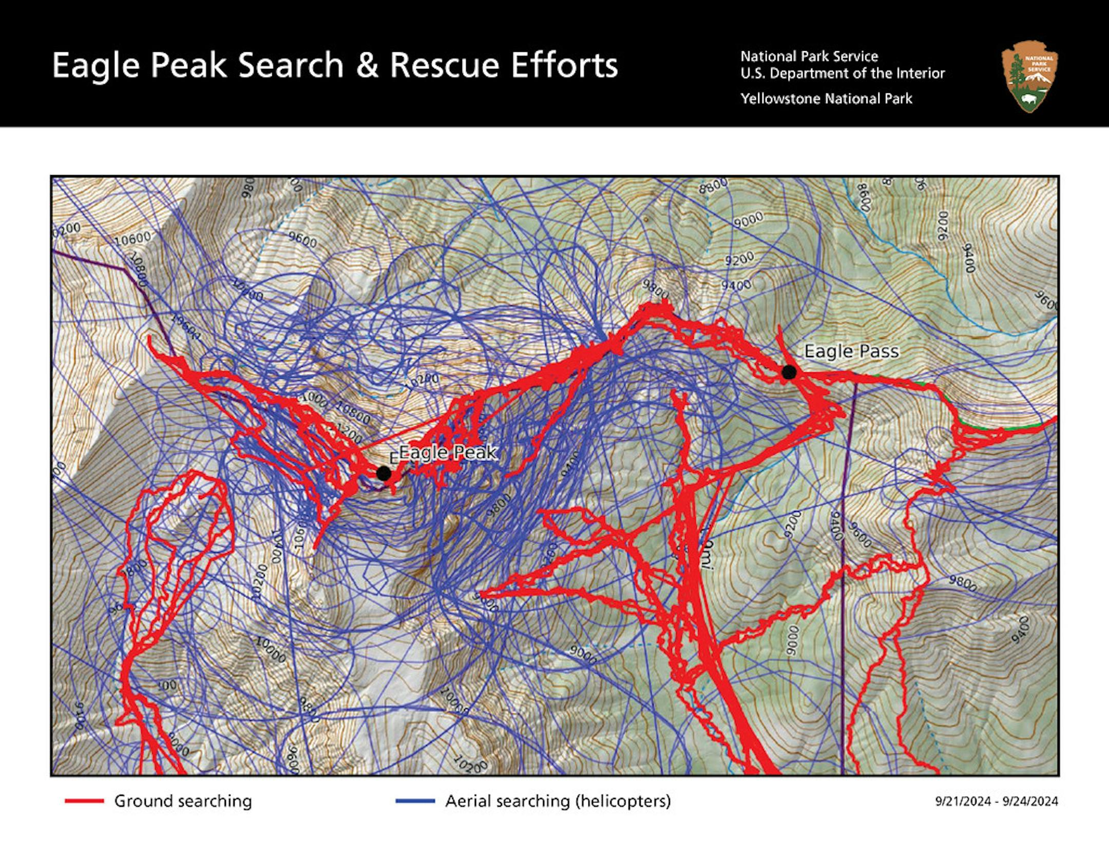 Rescuers from Yellowstone and Grand Teton national parks and Teton and Park counties have been searching on the ground and from the air since Saturday in the mountainous areas around Eagle Peak, in the park’s southeast corner and west of Cody, Wyo. They found King’s camp and personal effects that night.