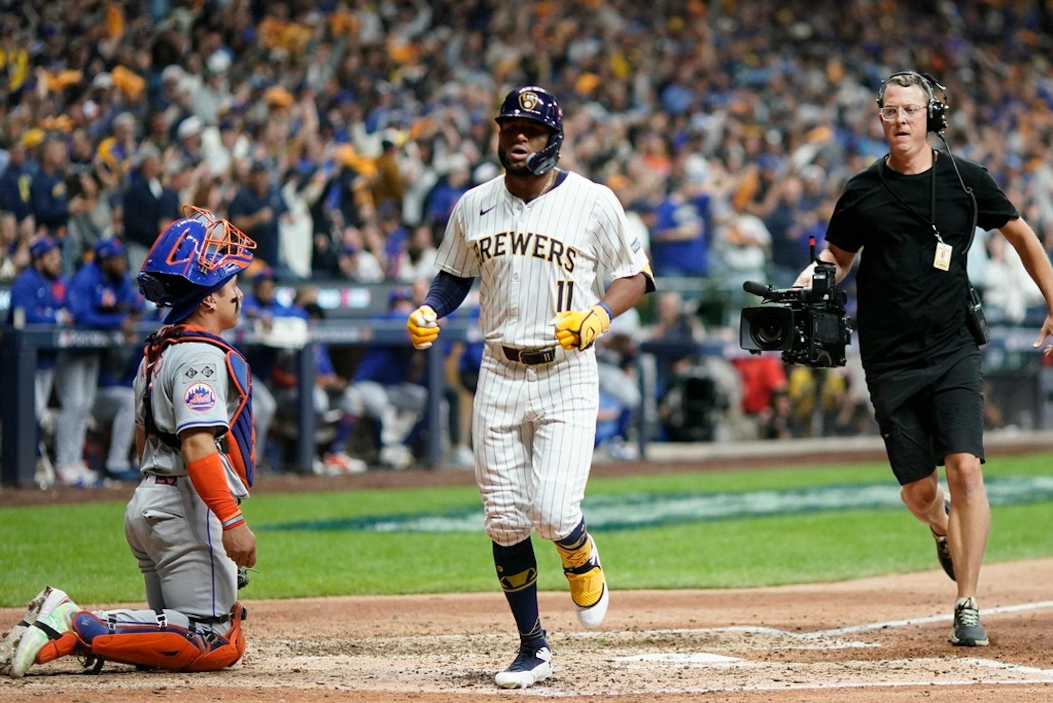 After Blake Perkins singled and William Contreras grounded into a double play, Willy Adames kept the eighth inning going with a single. Mitchell then hit a drive just over the wall in right-center, a 390-foot shot that sent the American Family Field crowd into a frenzy.