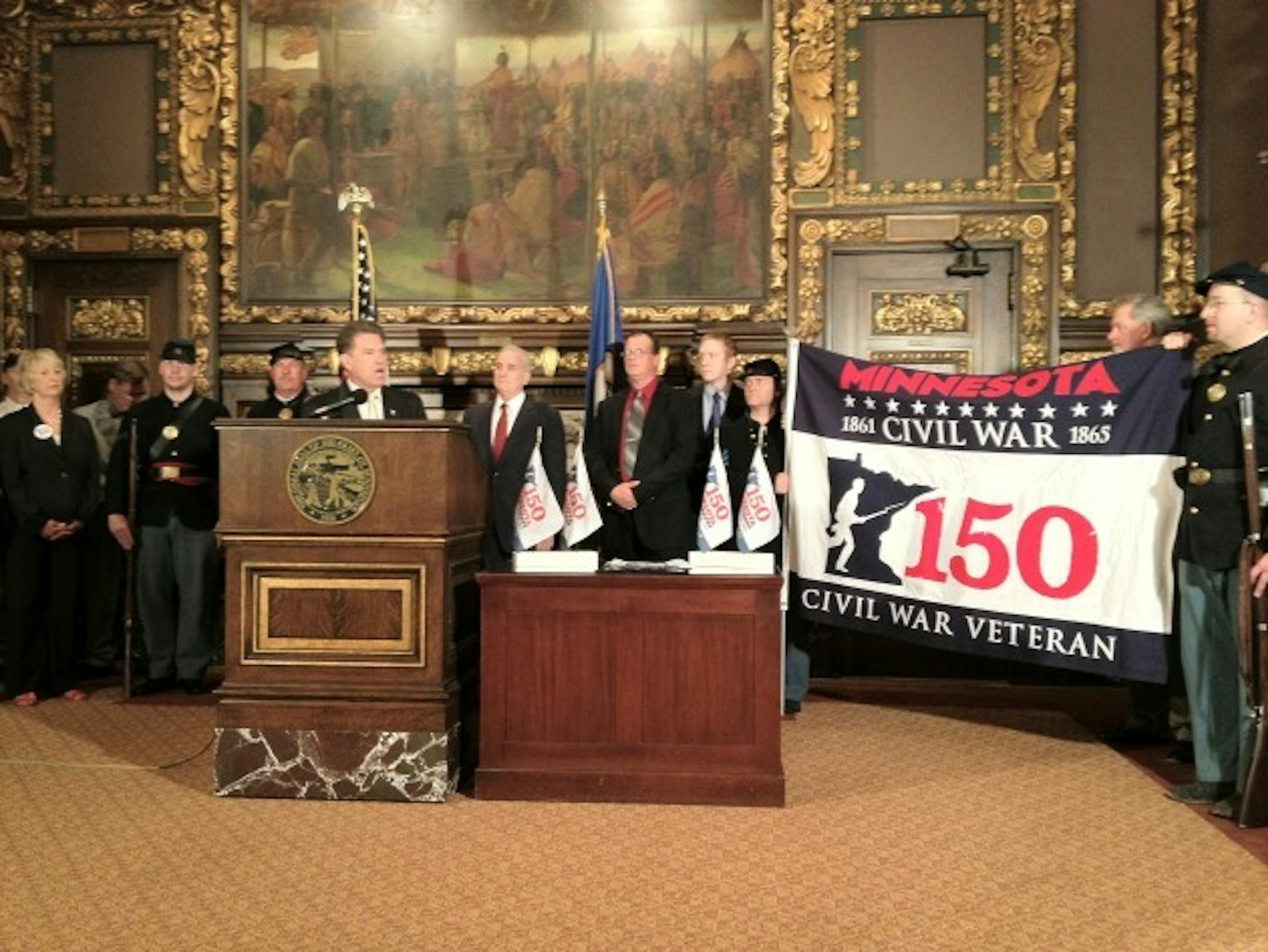 Gov. Mark Dayton joined state officials and uniformed Civil War reenactors to announce a slate of Memorial Day events to mark the war's sesquicentennial.