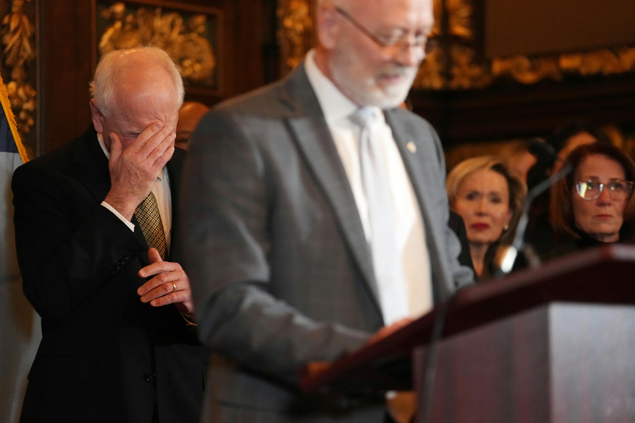 Minnesota Gov. Tim Walz appeared on the verge of tears at a Capitol news conference earlier this month as he prepared to sign two executive orders designed to curb gun violence.
