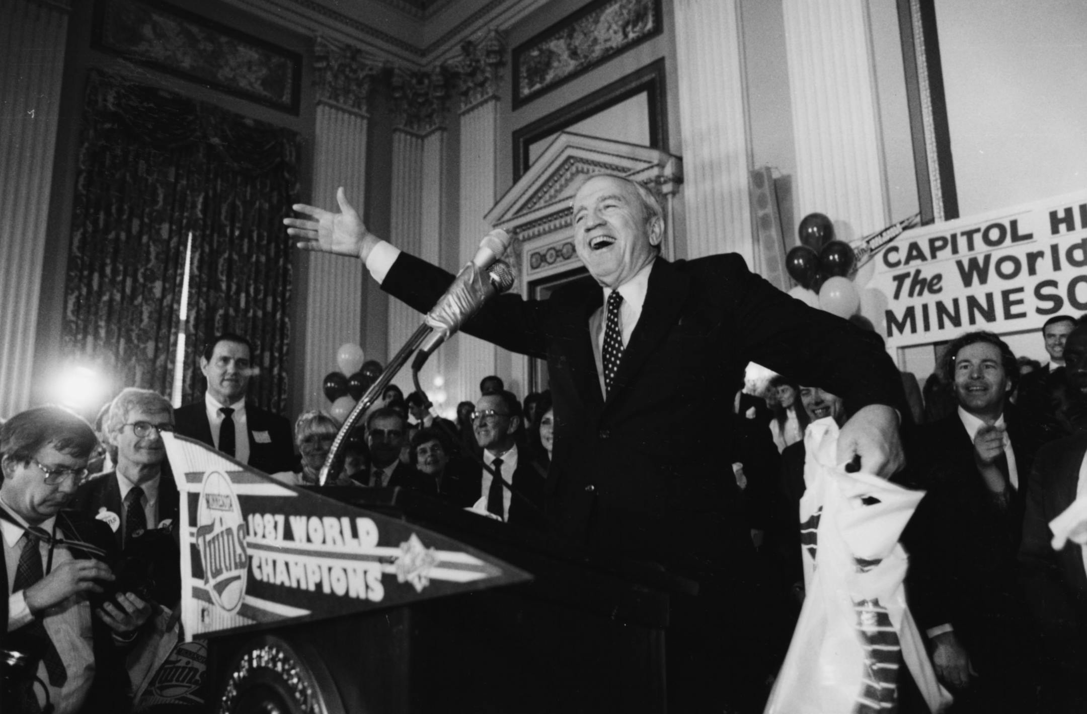 Then in 1961 Calvin Griffith and his family, the majority owners of the historic Washington Senators baseball franchise, moved west. The Senators were interested in Minnesota because of the existence of the Metropolitan Stadium, built in 1955 to attract a major league baseball team. The original focus had been on the New York Giants, but the Twin Cities lost that franchise to San Francisco. So as fate would have it, Calvin Griffith took the plunge and moved his team to Minnesota as the Twins.