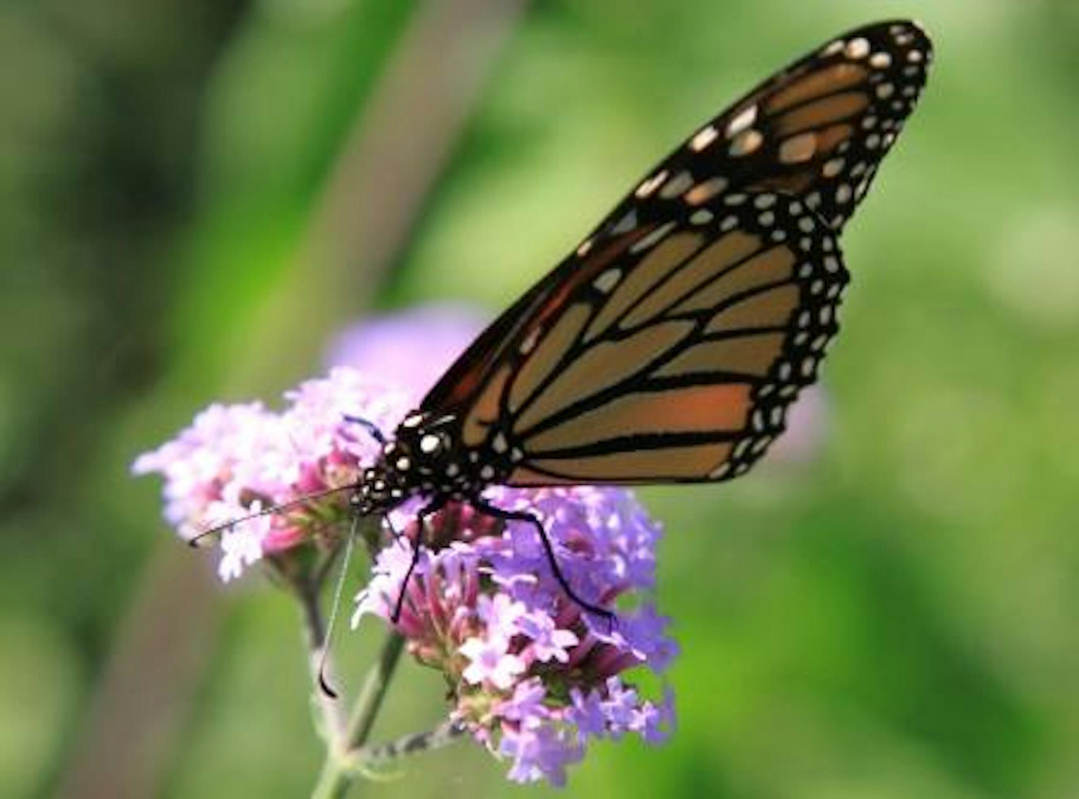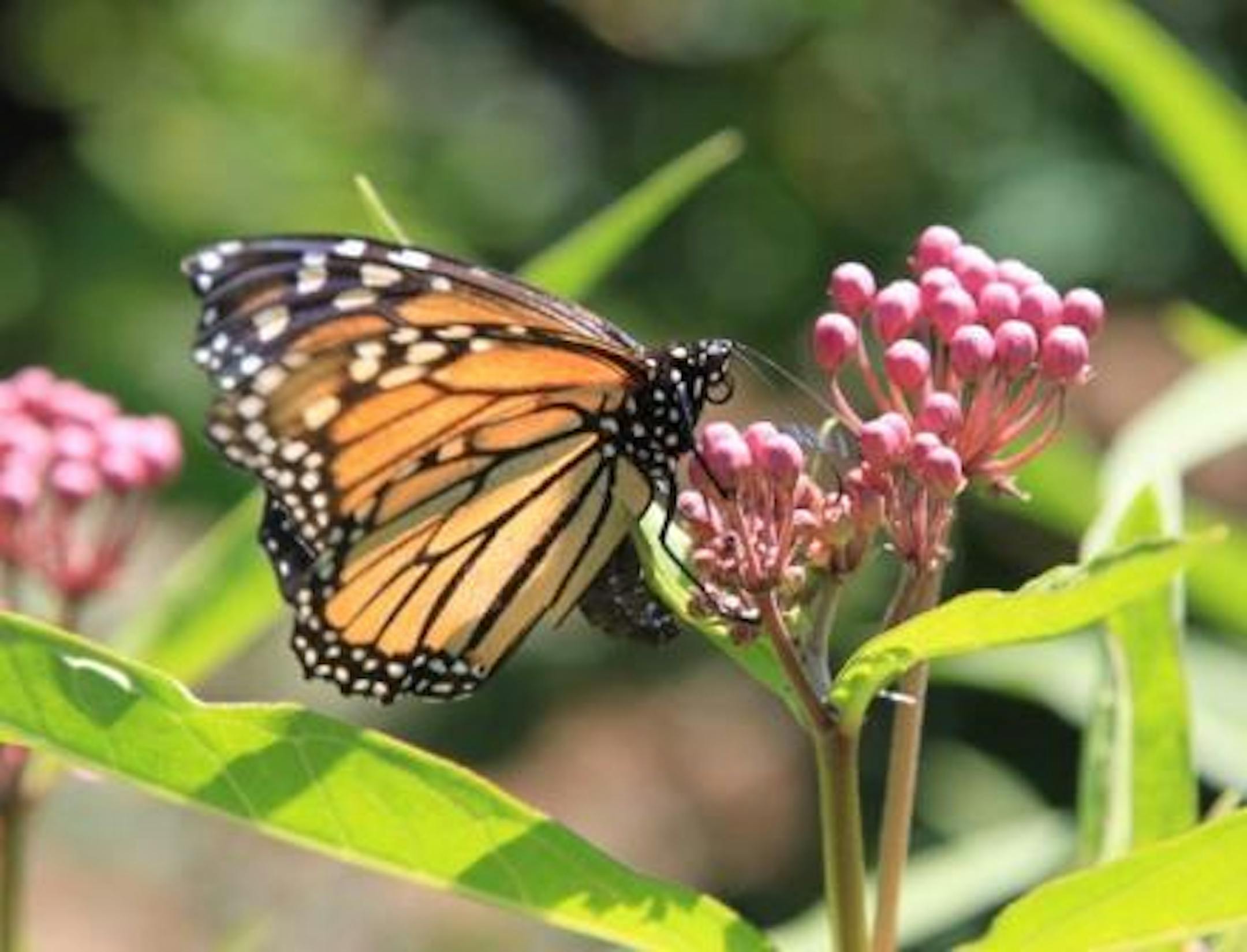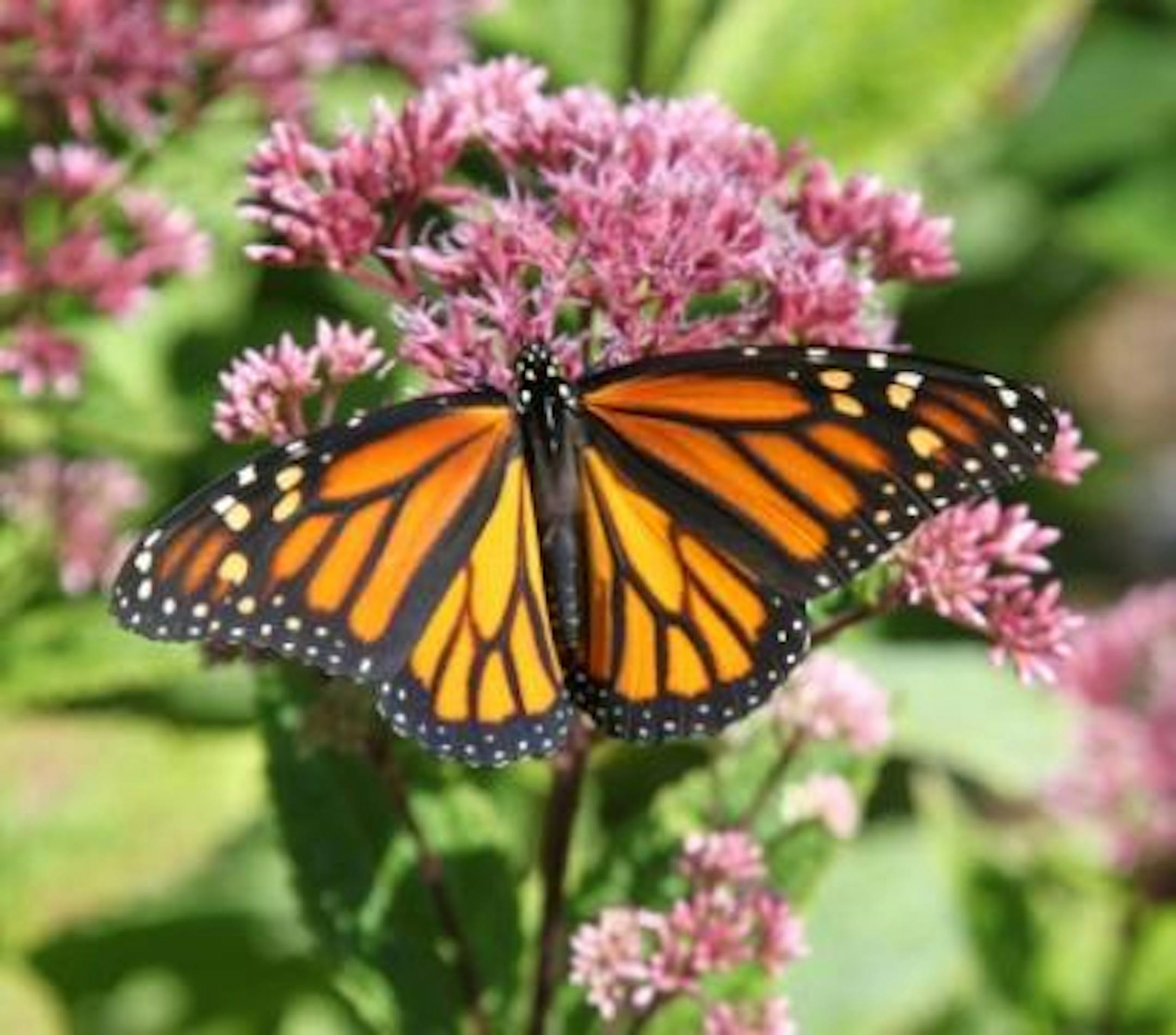 Monarchs swarm over native plants like Joe Pye Weed (Eupatorium).