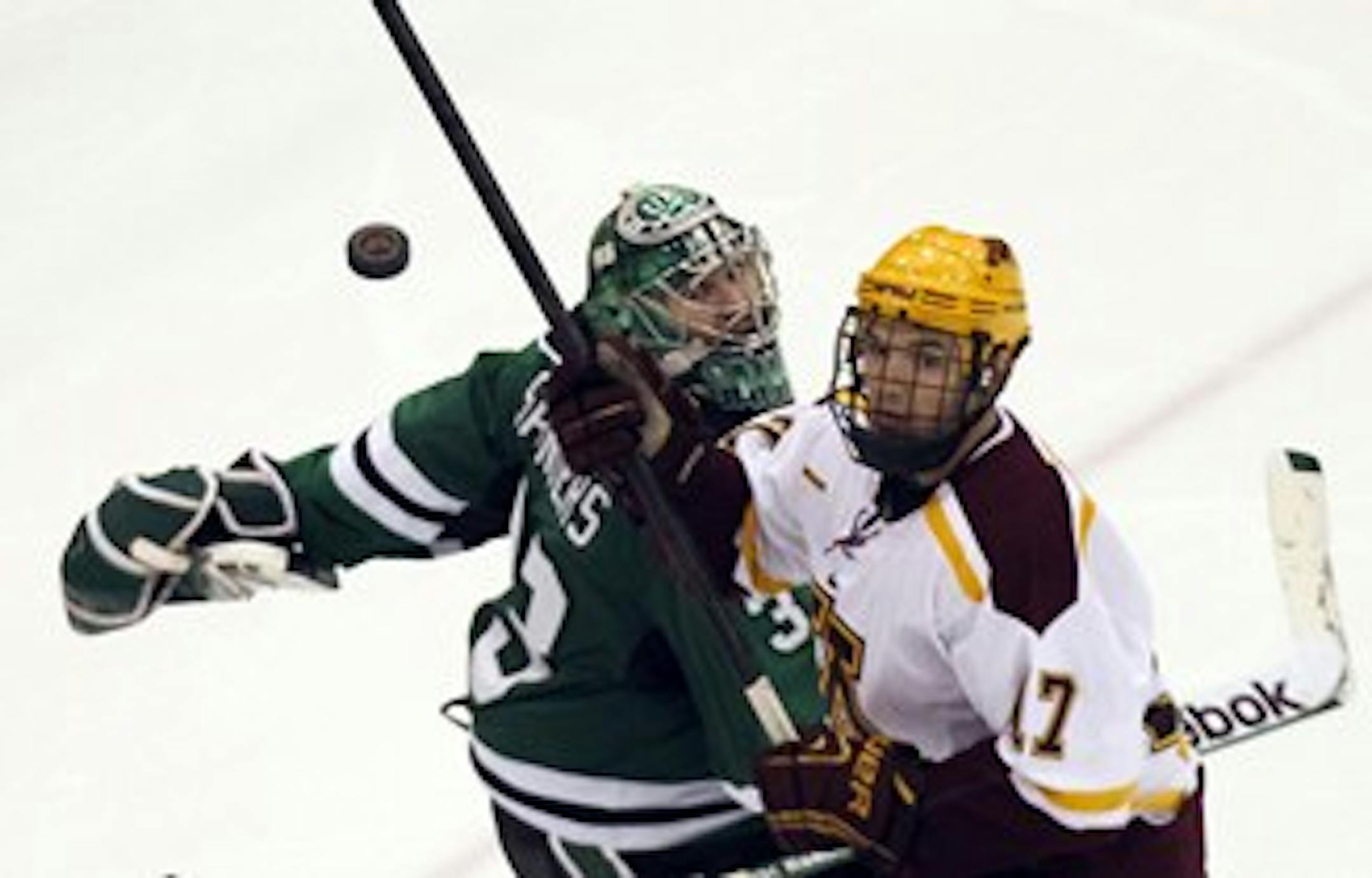 We have now spent approximately 18 years of our life in Grand Forks and 18 in Minneapolis. The first 18 involved numerous trips to Old Ralph Engelstad Arena (still never been to the new one), exceedingly fond memories of the 1987 UND national title game and admiring those who snuck dead gophers into the arena. In fact, we had a black and white glossy photo in our room for quite some time of a gopher impaled on a hockey stick. This is true. The past 18 years have involved numerous trips to Mariucci Arena, both in a professional and fan capacity. As a regular rube in the stands, let's just say the allegiance shifted.