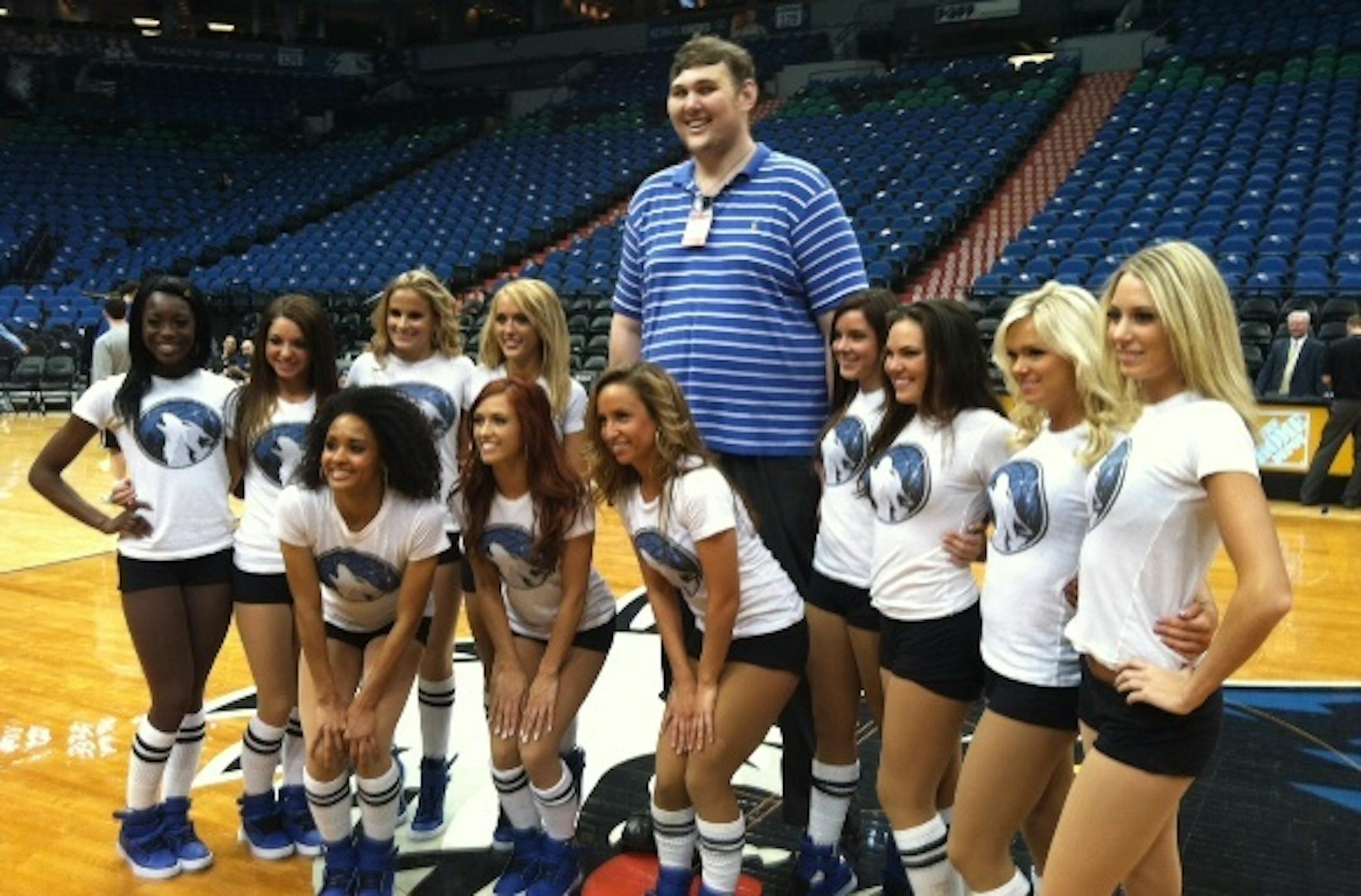 Also, if you didn't read our account of the world's tallest living American -- Igor Vovkovinskiy -- and his first trip to a Wolves game in several years, you can check it out here. Below is a shot we took of 7-foot-8 Igor with the Wolves dance team.