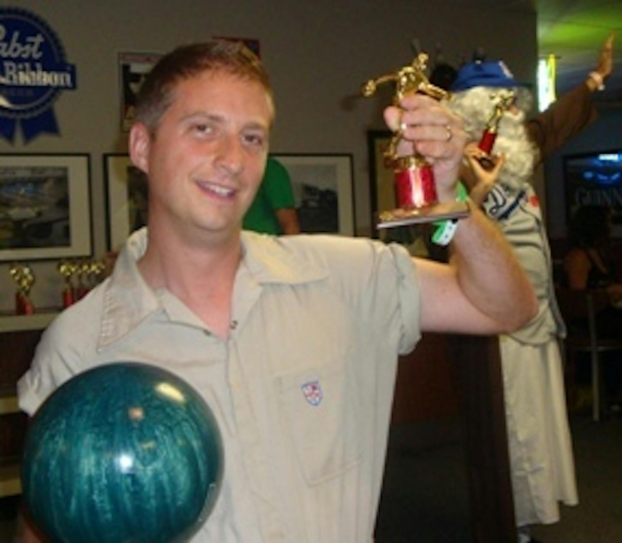 In any event, History Man wins the coin flip, rolls first and scores a 9 on his ball. So there is little margin for error, but there is also a sweet reward out there. We pick up our ball and hurl it with full force. It nestles perfectly into the Brooklyn-side pocket, where we've been doing plenty of damage all night. Ah, but this is a differently lane. What might have been a fairly routine strike over on Lane 17 -- like Lonnie Smith scoring routinely on a double to the gap in 1991, not that we're still bitter -- instead left those two [redacted] pins on the right side again.