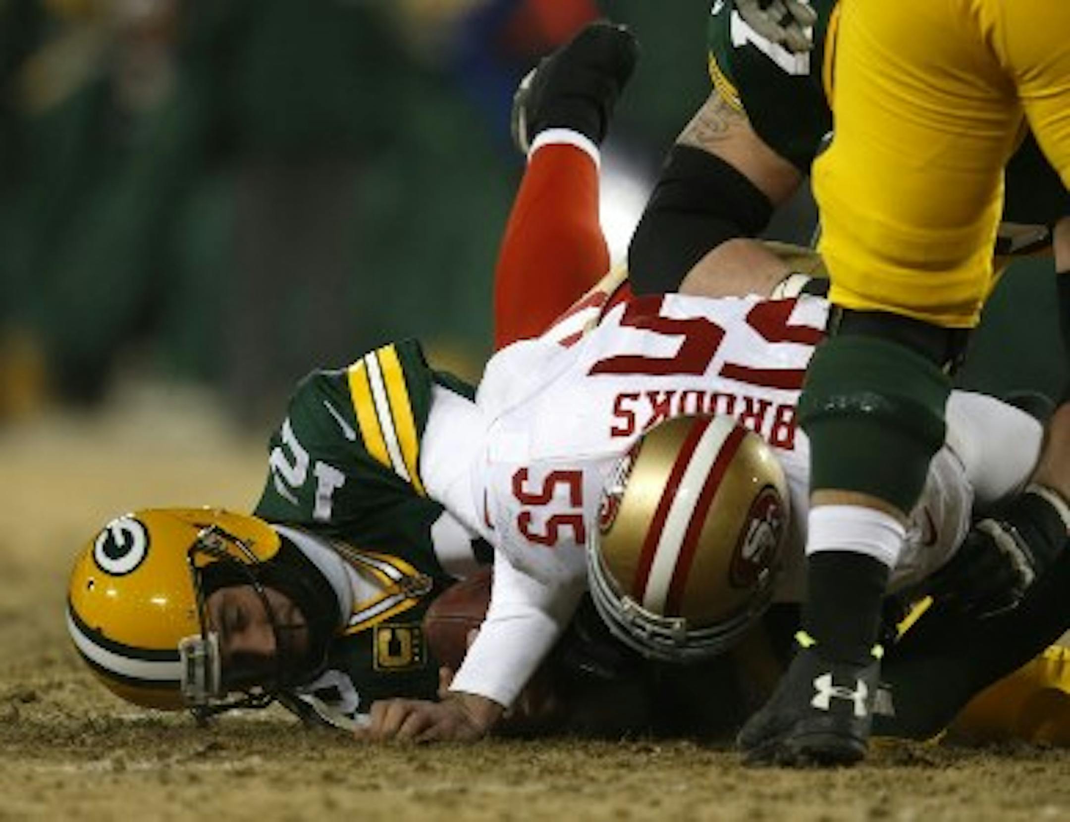 *The Packers have played five playoff games in cold weather under Rodgers, with temperatures at kickoff below freezing in each game: at Philadelphia in 2010, at Chicago in 2010, home vs. Giants in 2011, home vs. Vikings in 2012 and home vs. San Francisco on Sunday. While they managed to win three of them -- two in 2010 when they actually had a defense and 2012 vs. Minnesota when Joe Webb was the quarterback -- they haven't topped 24 points in any of those five cold-weather playoff games under Rodgers.