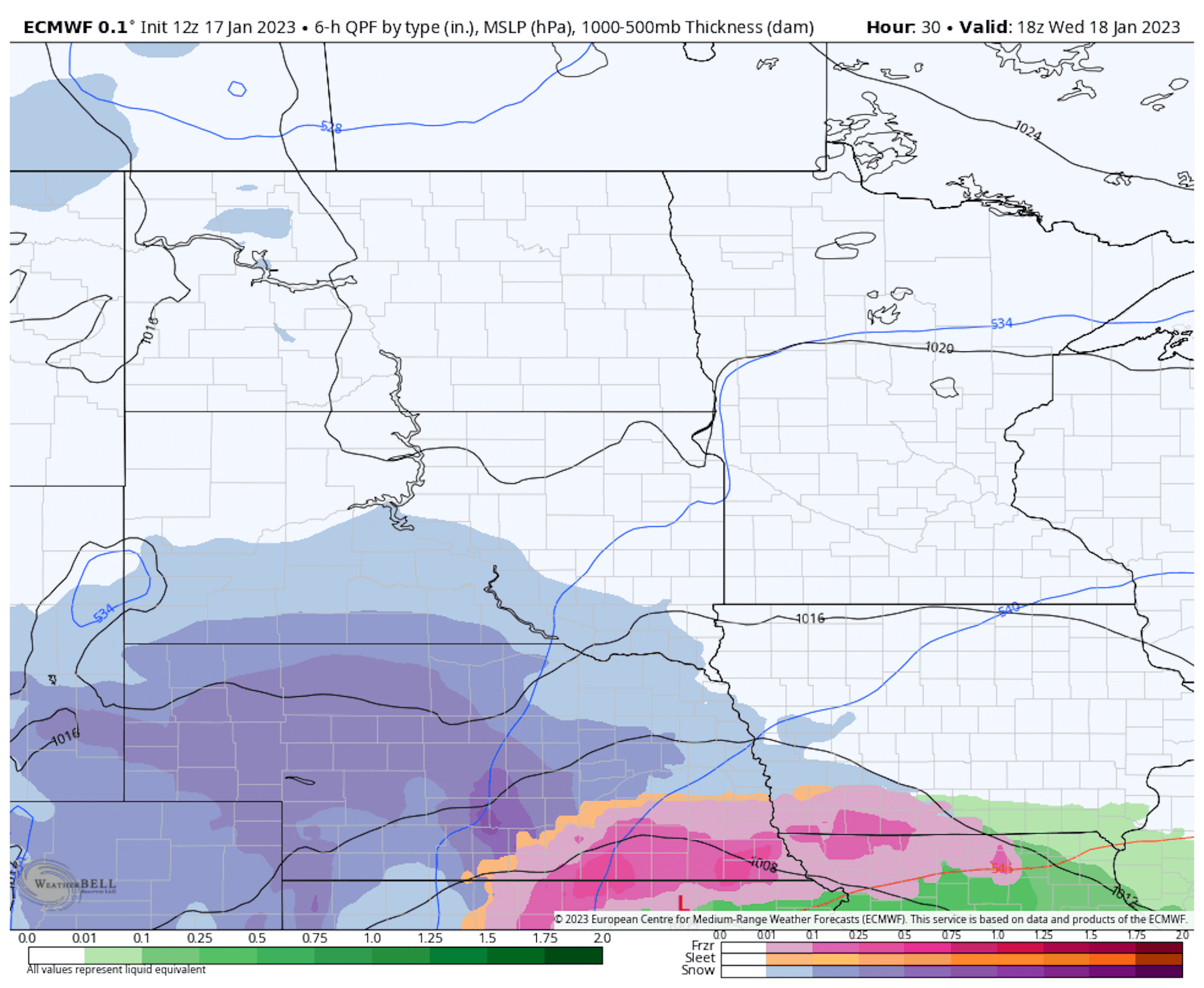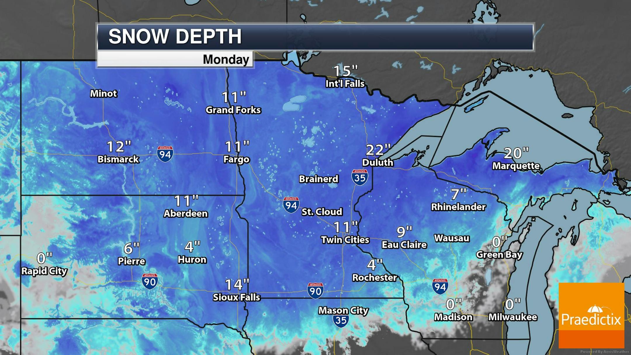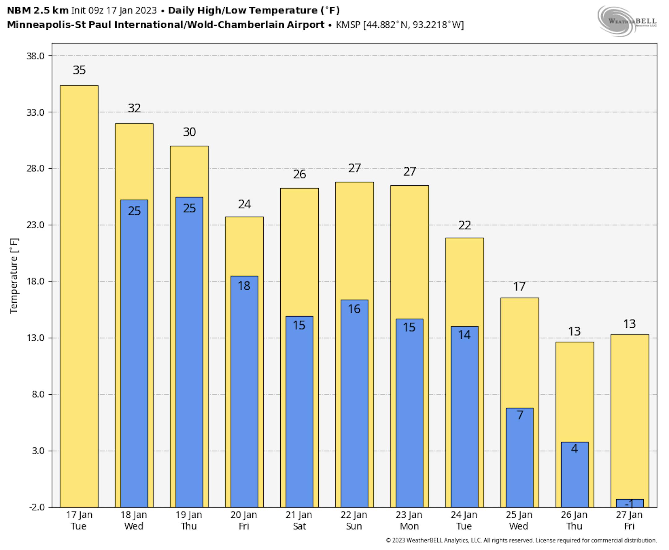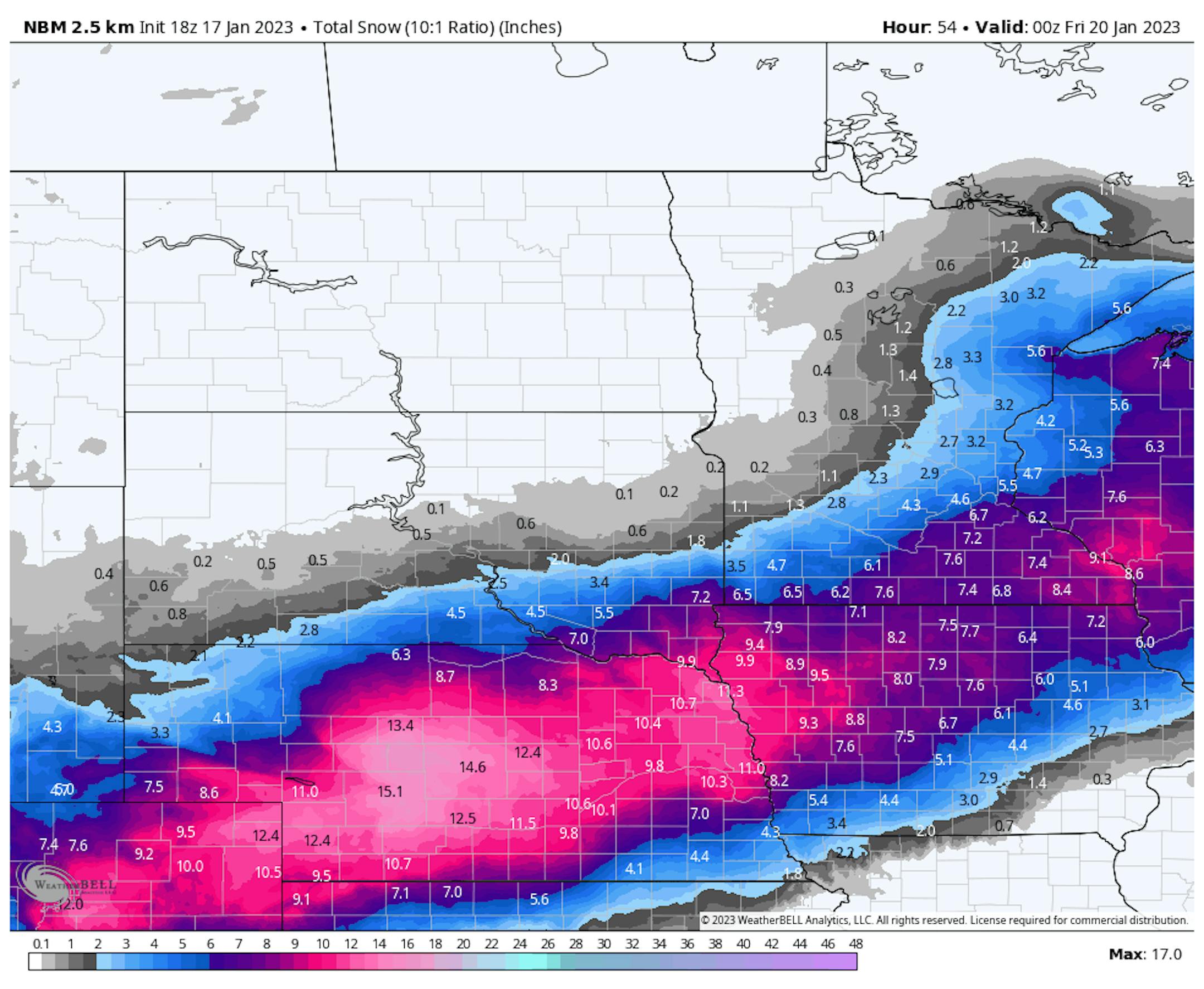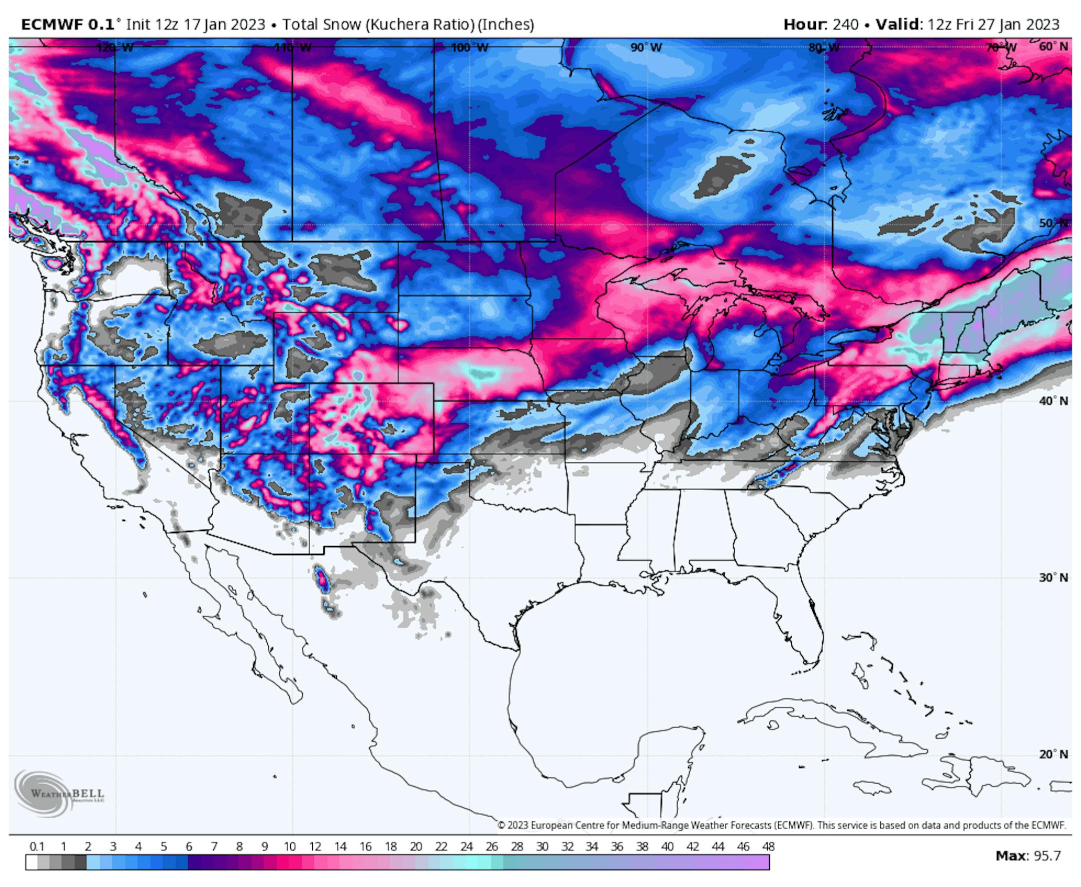 ECMWF Extended Snowfall Outlook (WeatherBell/The Minnesota Star Tribune)
