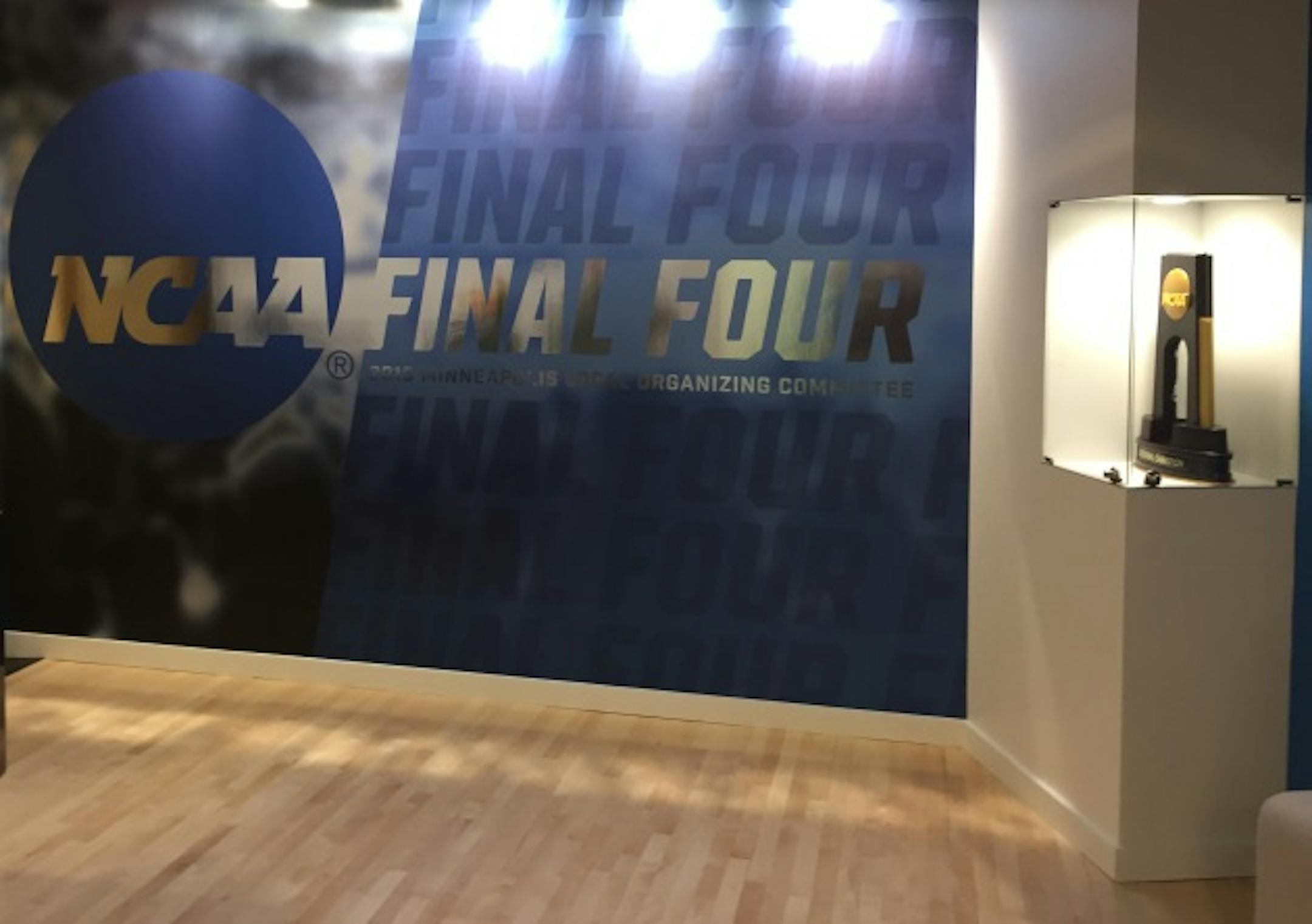 It sits behind the glass of a locked display case four stories up in the north tower of the U.S. Bank Plaza building in downtown Minneapolis where the 2019 NCAA Final Four Minneapolis Local Organizing Committee headquarters.