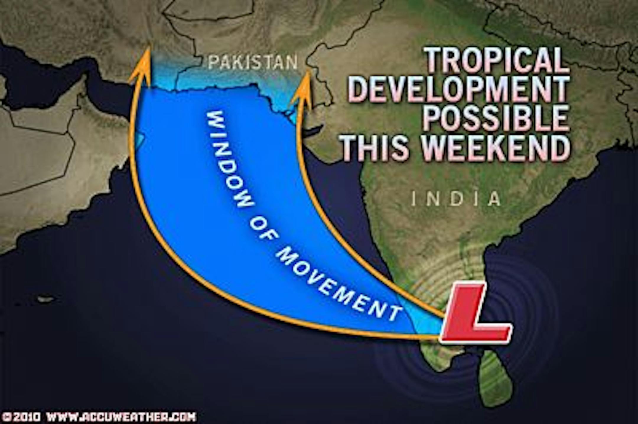 In the midst of cleaning up after Tropical Cyclone Phet, Oman and Pakistancould be in the line of fire as another tropical system begins to develop.According to AccuWeather.com meteorologists, models continue to suggest atropical cyclone will develop in the Arabian Sea this weekend.