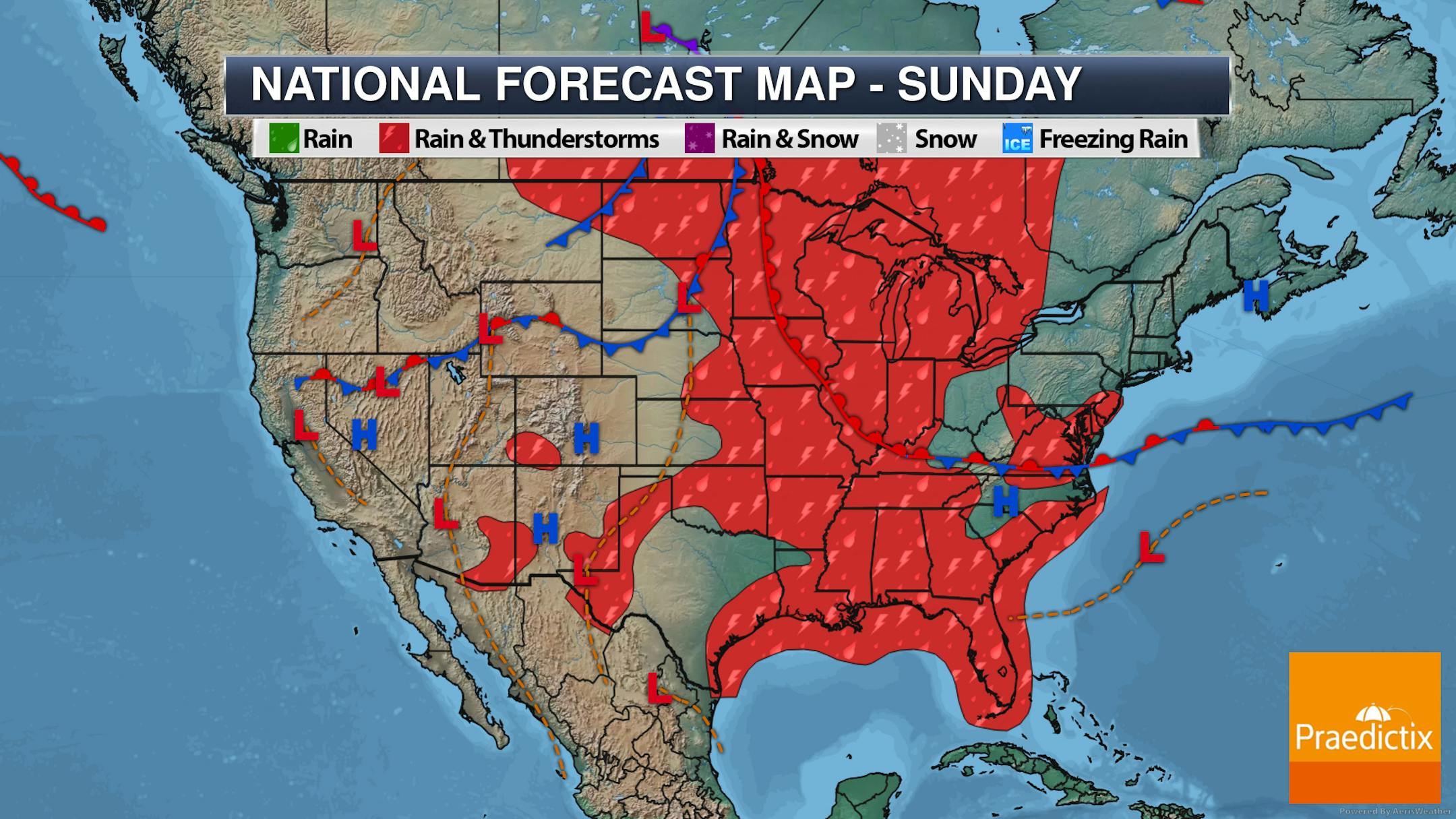 While some non-severe showers and storms will continue across parts of southeastern Minnesota Sunday morning, another round of strong storms will be possible as a cold front moves across the state during the afternoon and evening hours.