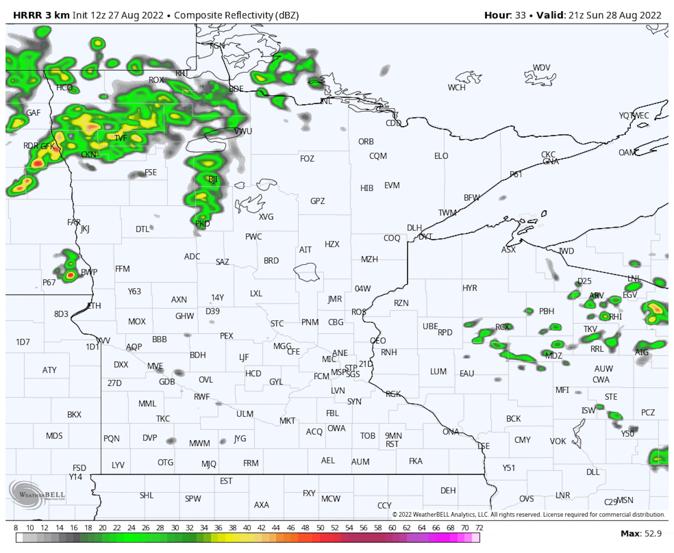 If you're reading this Saturday evening, note that we will be watching the threat of showers and thunderstorms through Saturday night across portions of eastern and southern Minnesota. A few of these could be on the strong side and also contain heavier rainfall.