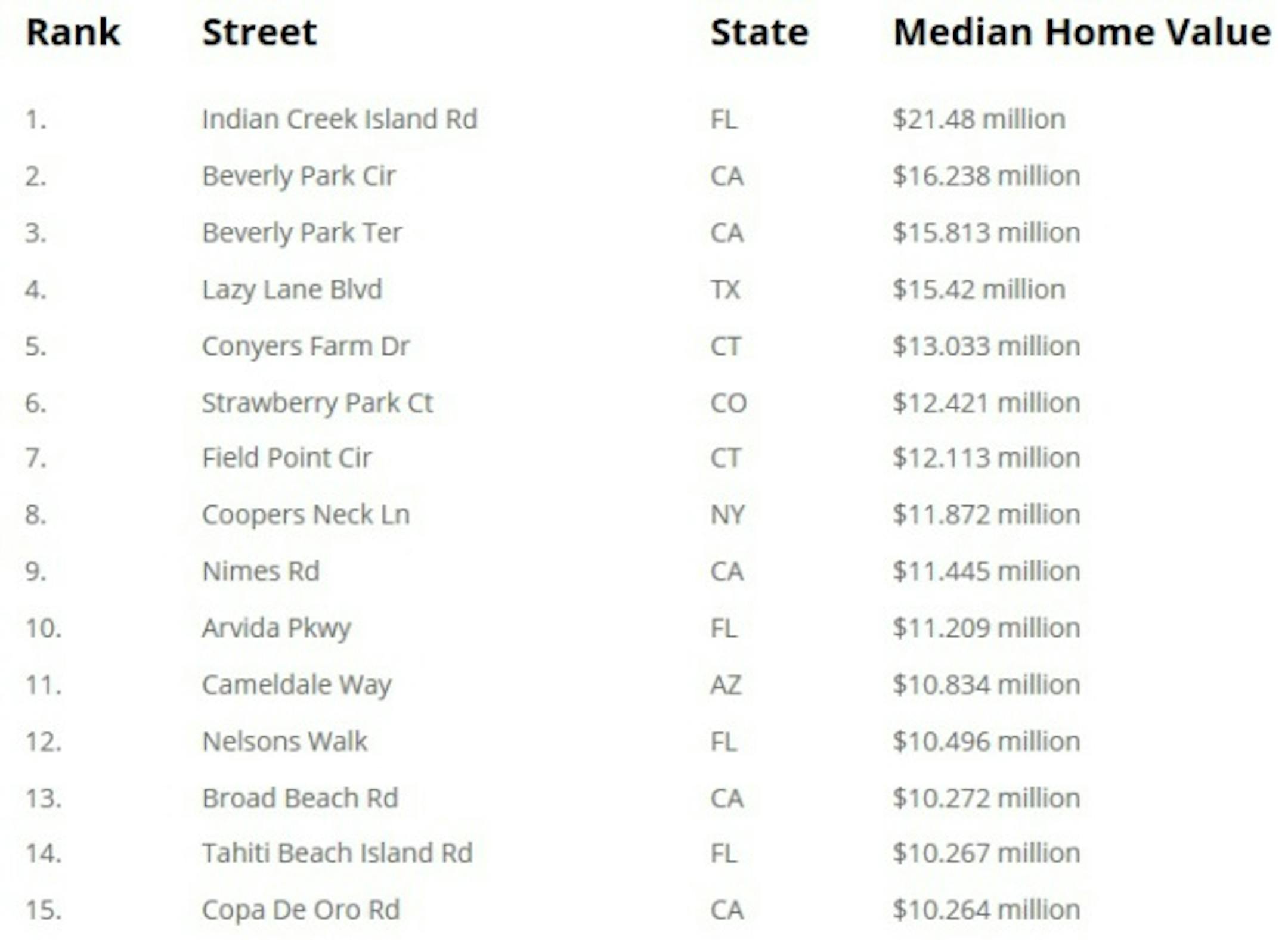And the most expensive streets in America:
