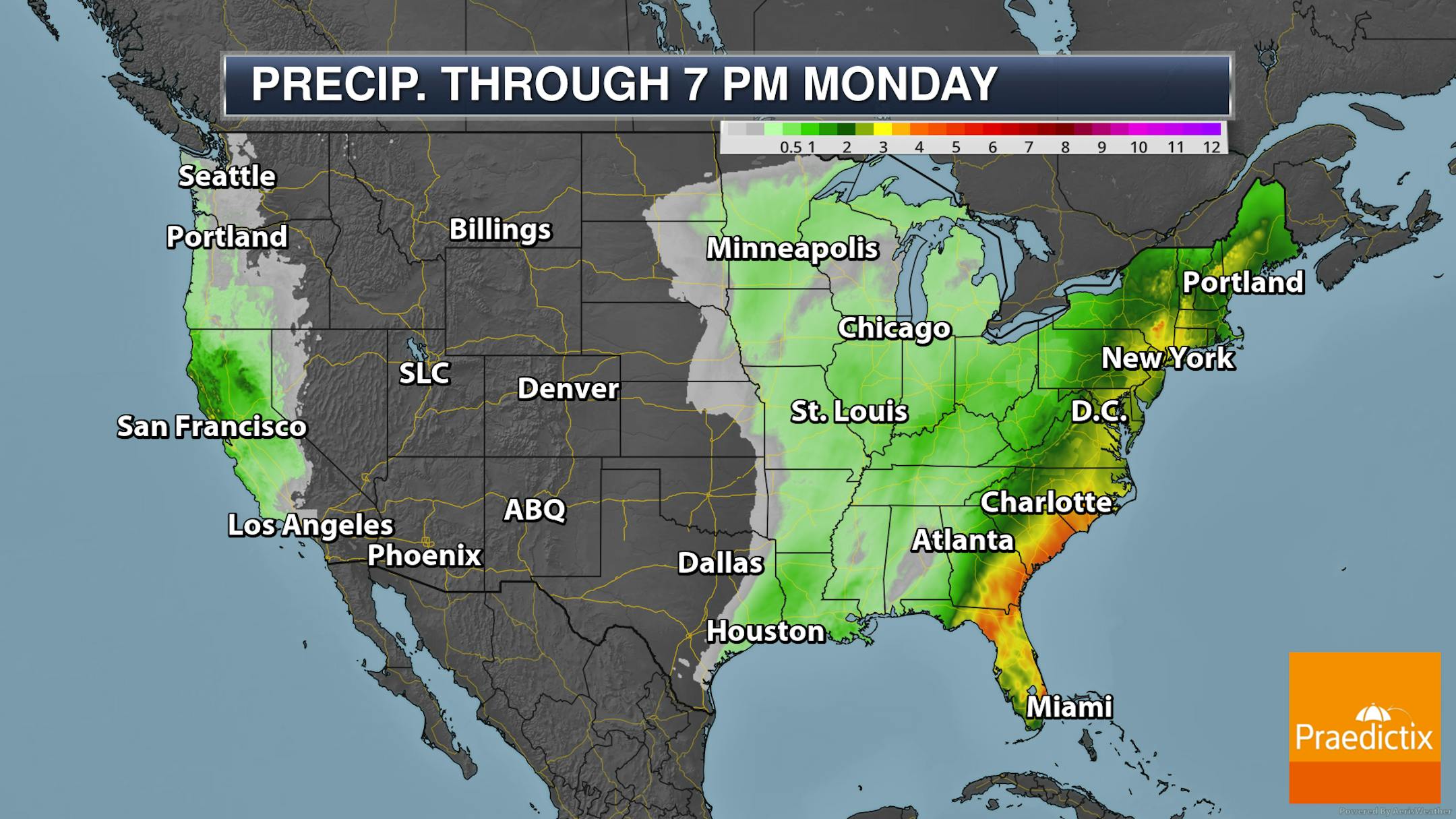 Forecast loop from Noon Sunday to 6 AM Monday.