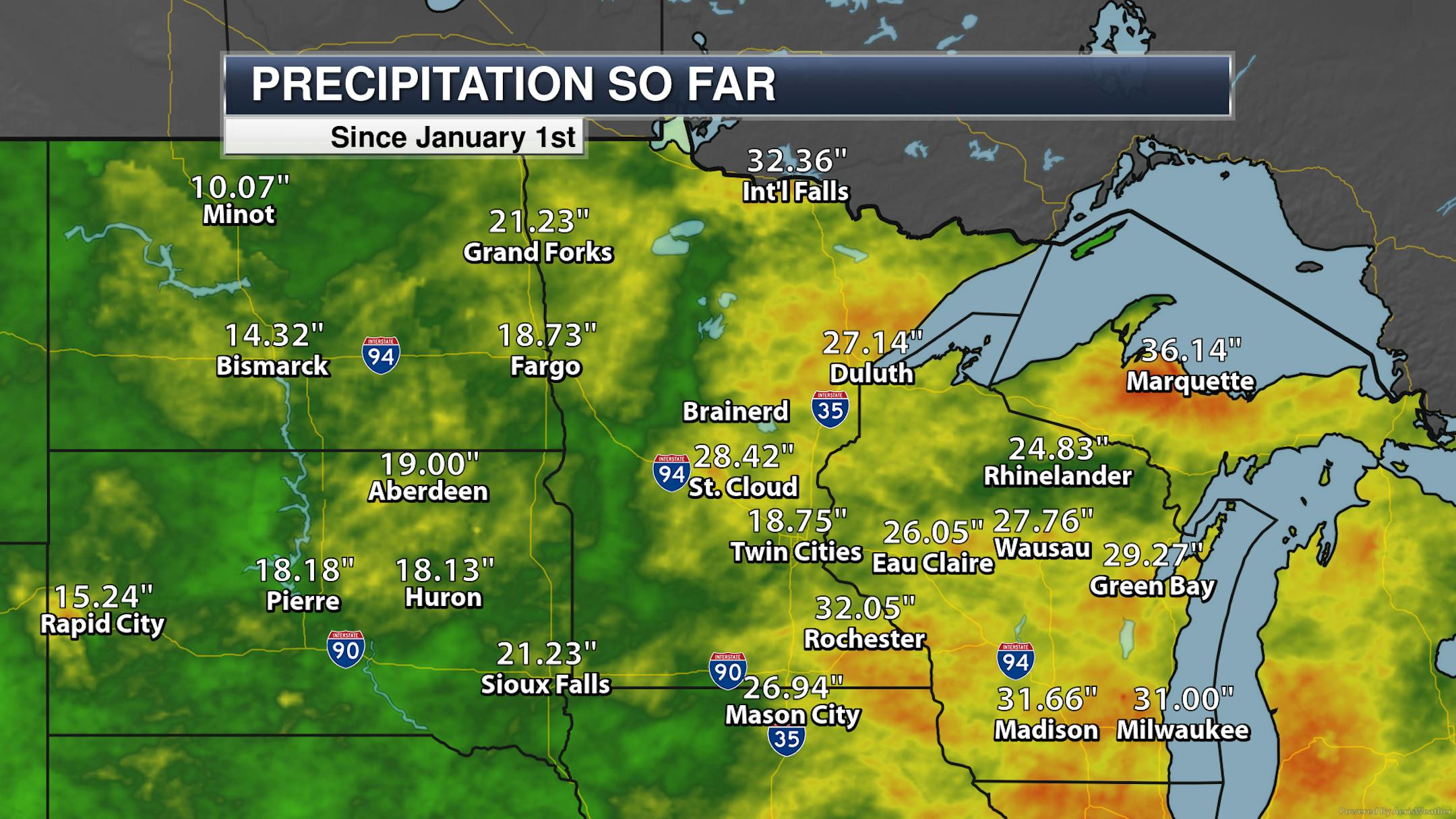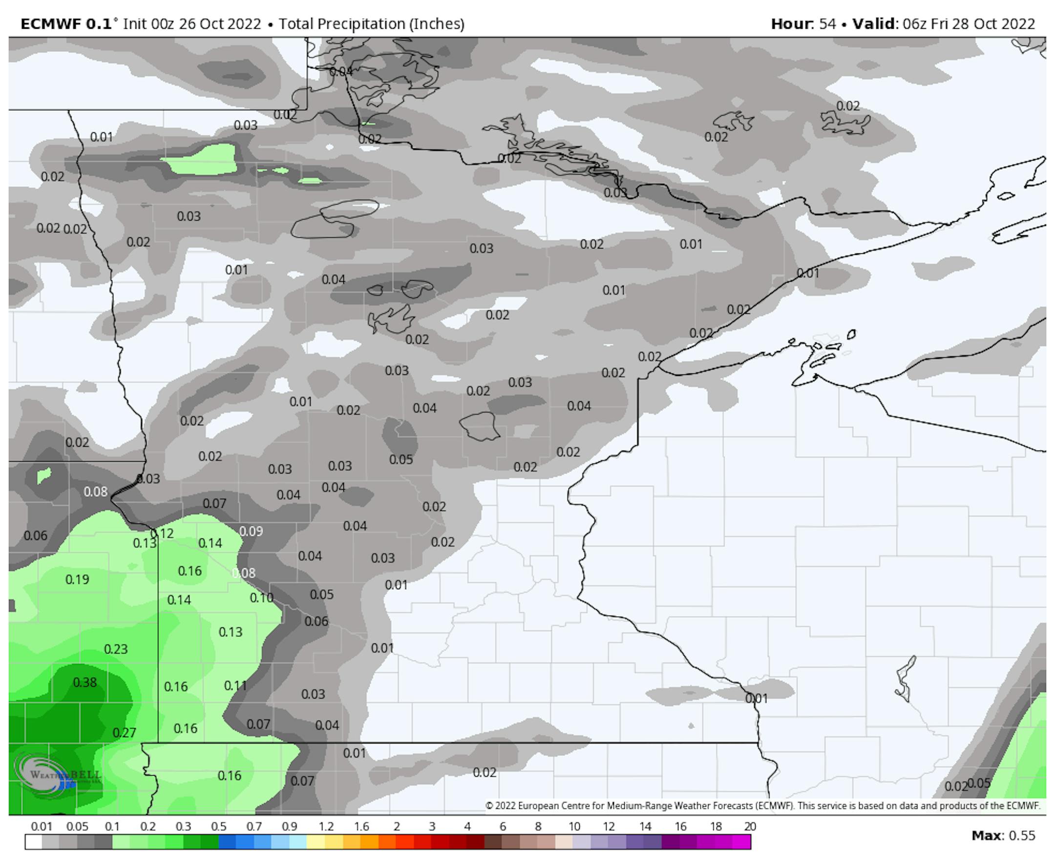 Maybe a tenth to two-tenths of an inch of rain will be possible in southwestern Minnesota late Wednesday night into Thursday where the precipitation is most consistant, otherwise, very light precipitation is possible mainly north and west of the metro.
