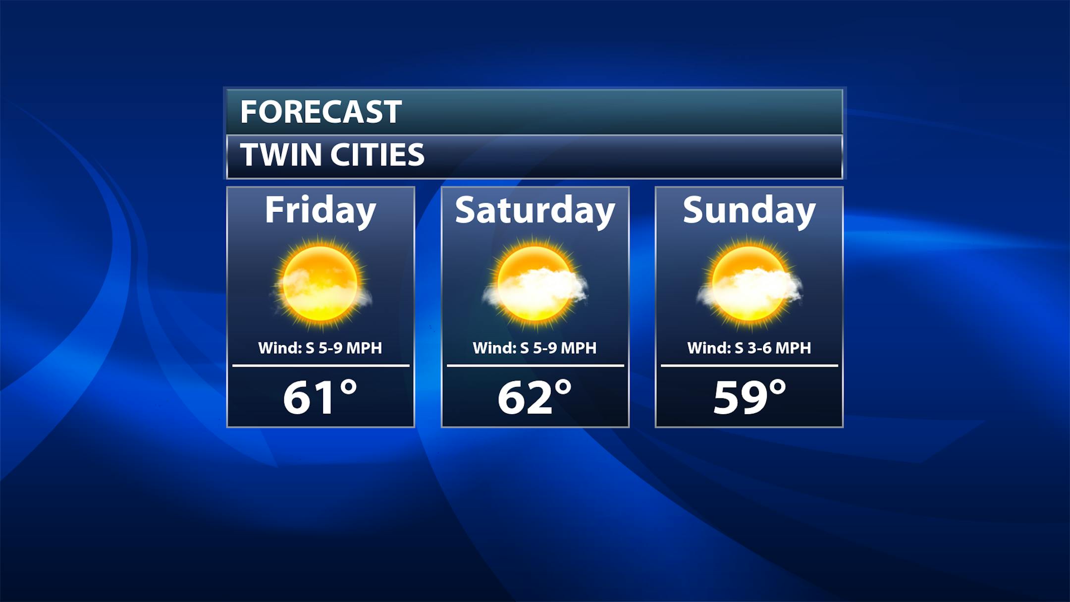 Quiet weather is expected as we head into the last weekend of the month of October with highs that are up to around 10F degrees above average. While mainly sunny skies are expected on Friday, I'm expecting a mix of sun and clouds on Saturday as the Twin Cities will be right on the cloud/sun boundary (more clouds as you head north across Minnesota, sunnier skies for southern Minnesota). Sunday may start off on the sunnier side of things before cloud cover moves in by the midday hours.