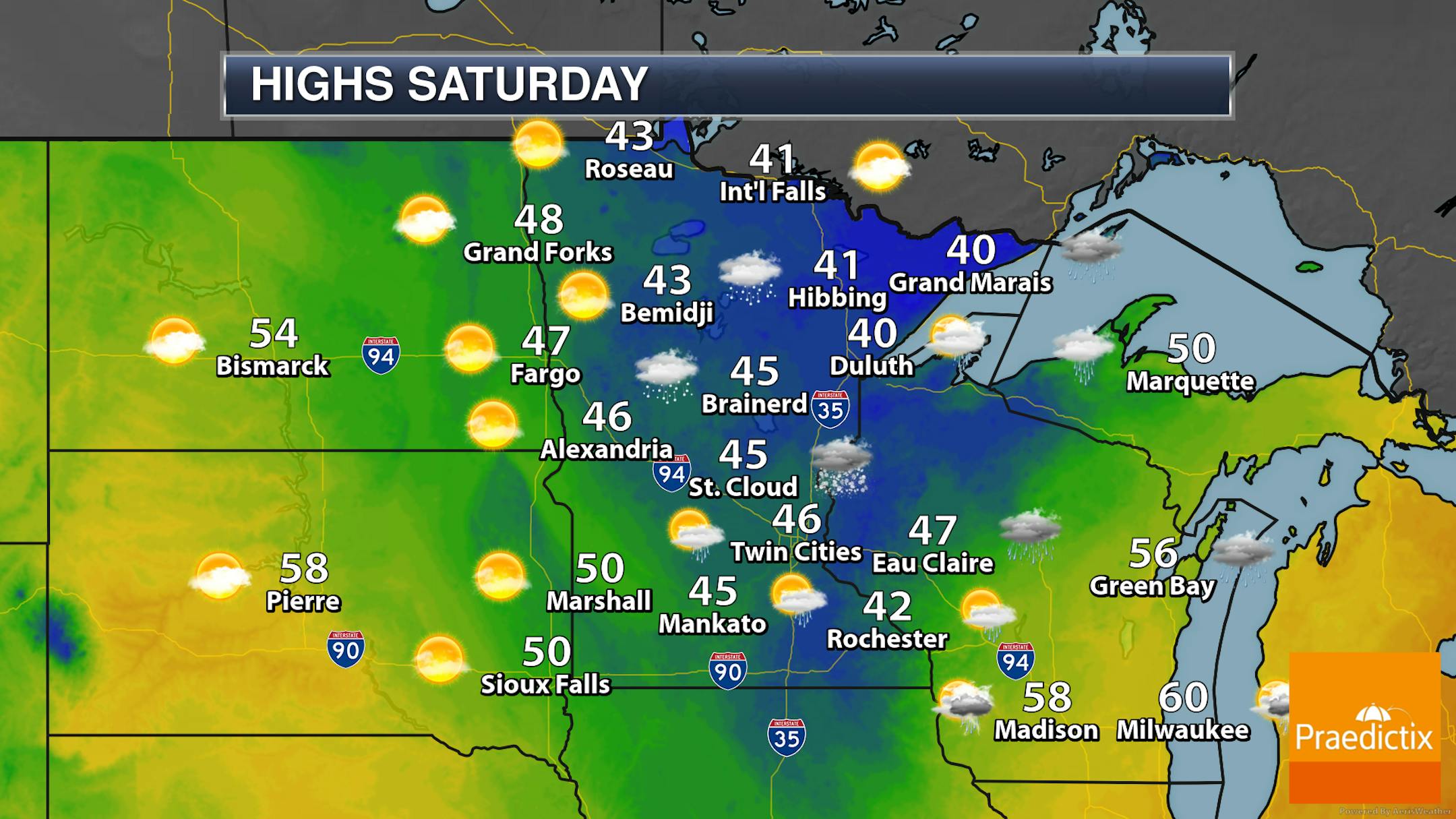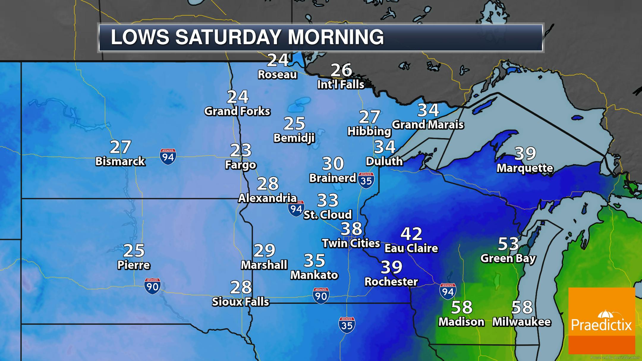 Forecast loop from 7 AM Friday to 7 AM Saturday.
