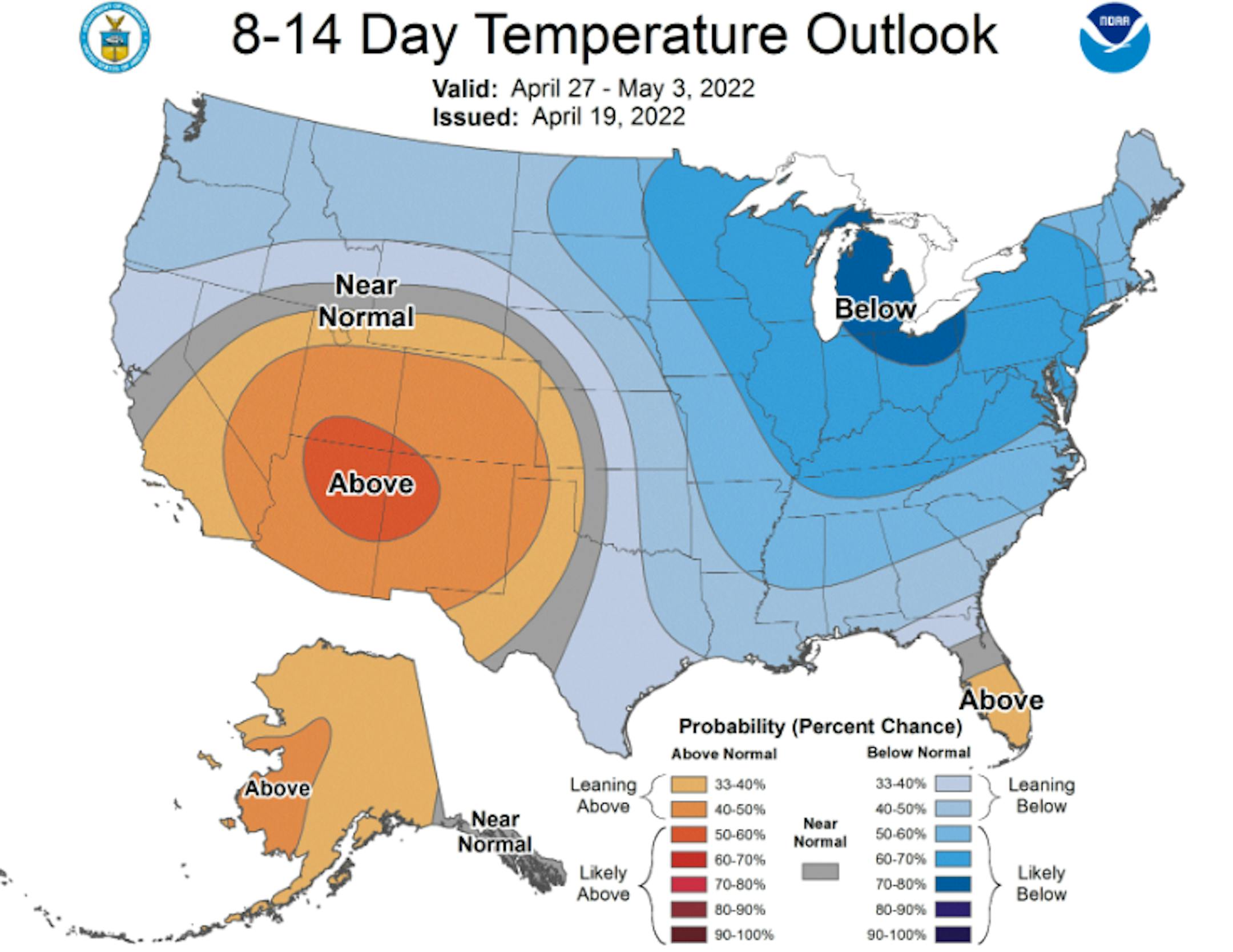 "April 18, 2022 - Spring leaf out continues to progress across the country. Our spring leaf anomaly compares the arrival of spring leaf out this year to a long-term average of 1991-2020. In the East, spring leaf out is patchy this year, arriving days to weeks late across much of the Southeast and Midwest, and arriving days to weeks early across the southern part of the Midwest, the Southern Appalachians, the mid-Atlantic, and the Northeast. Parts of Maine are over a week early. In western states, spring leaf out is also patchy, arriving a week late in some locations and over a month early in others. Parts of Montana and South Dakota are 2-3 weeks early. Spring bloom is also spreading north, arriving days to a week late in Texas and Florida and days to several weeks early in California. Spring bloom is over a week early in parts of Georgia, the Carolinas, and Virginia. The mid-Atlantic is patchy, several days early in some locations and several days late in others."