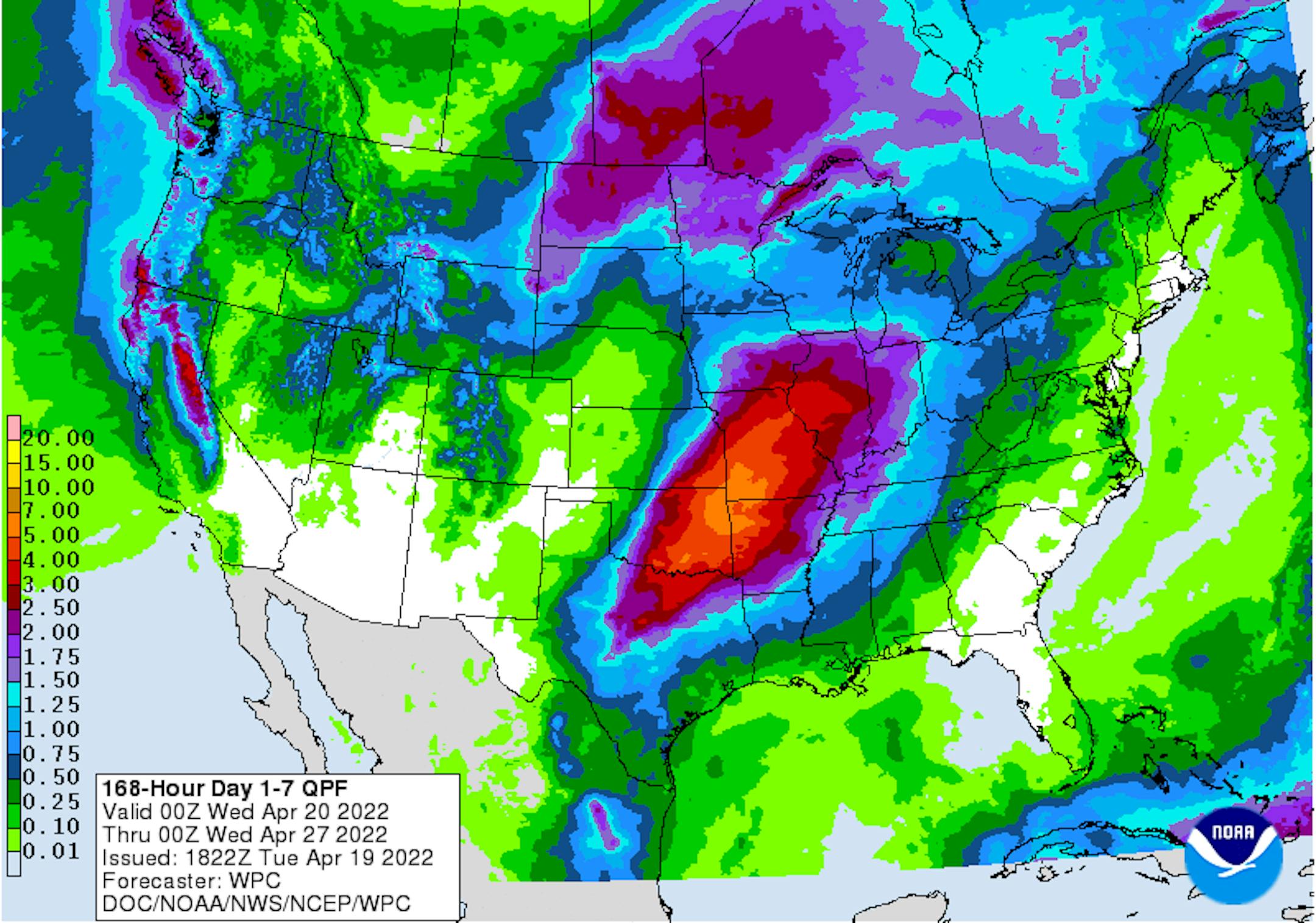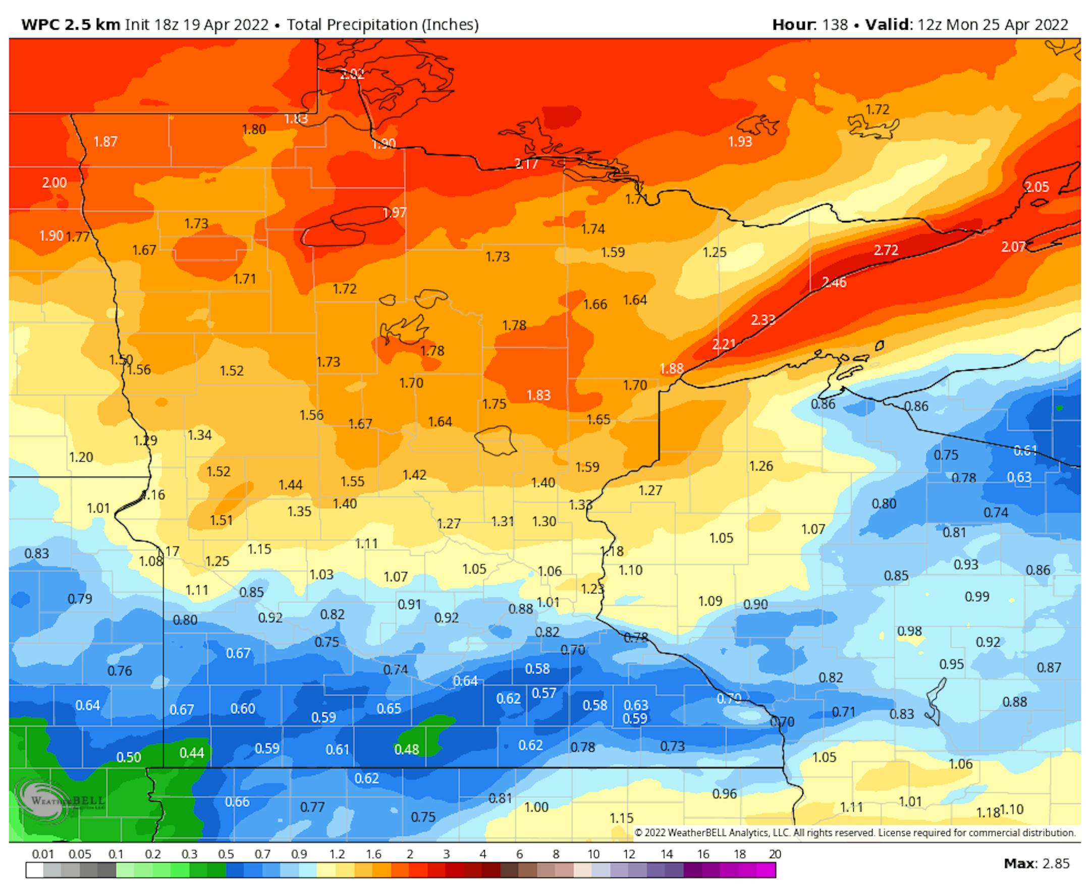 According to NOAA's WPC, the precipitation outlook through the weekend ahead looks pretty impressive with some 1" to 2" liquid tallies possible across the northern half of the state. Interestingly, some of the rain late week and into the weekend could be accompanied by thunder.