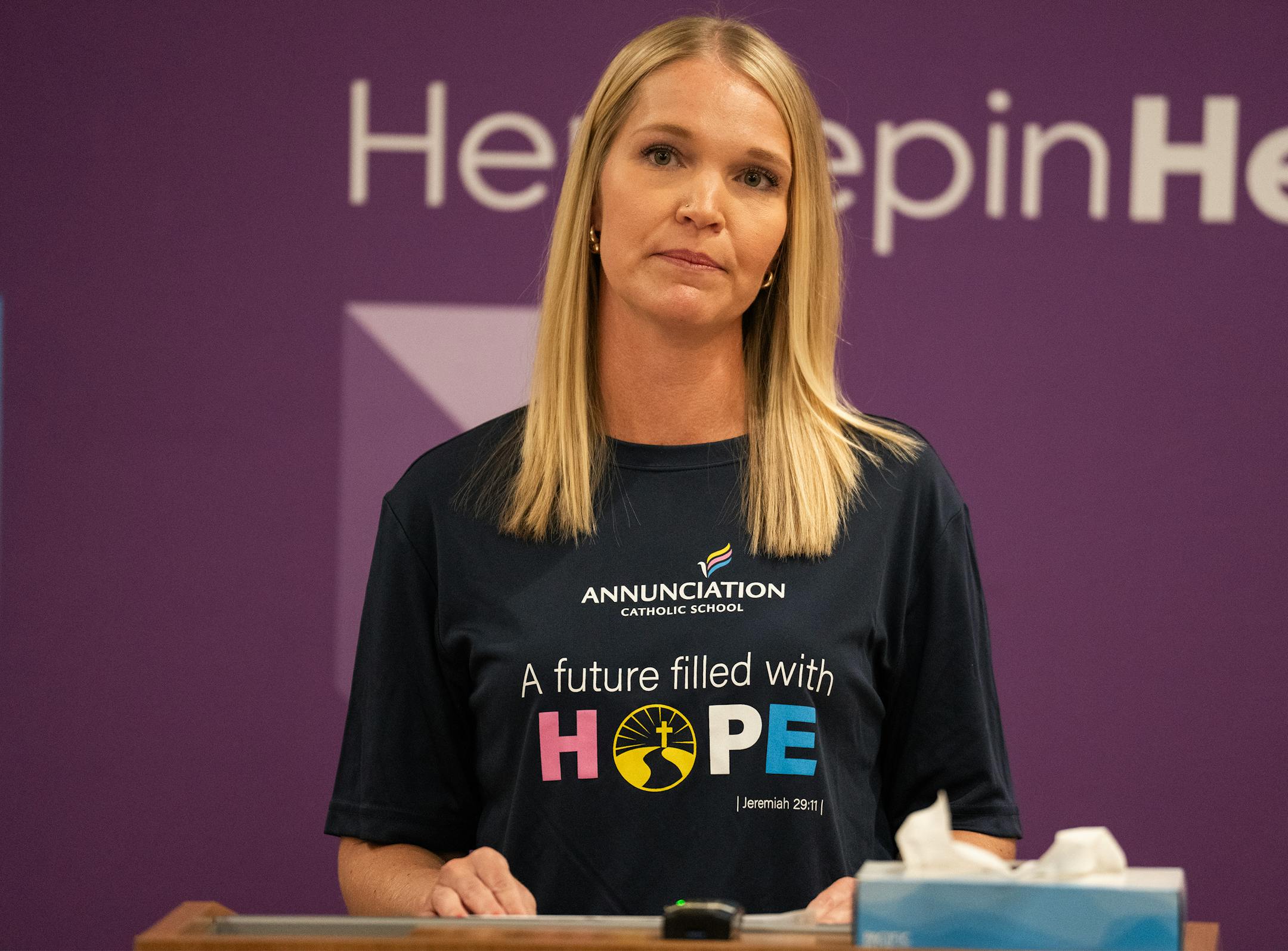Malia Kimbrell, a nurse and clinical care supervisor at HCMC, said her daughter, Vivian St. Clair, was struck by bullets twice in her back and once in the arm as she hid. She then rushed to the school gym, where friends asked her: “Vivi, are you OK? You have a hole in your back.”